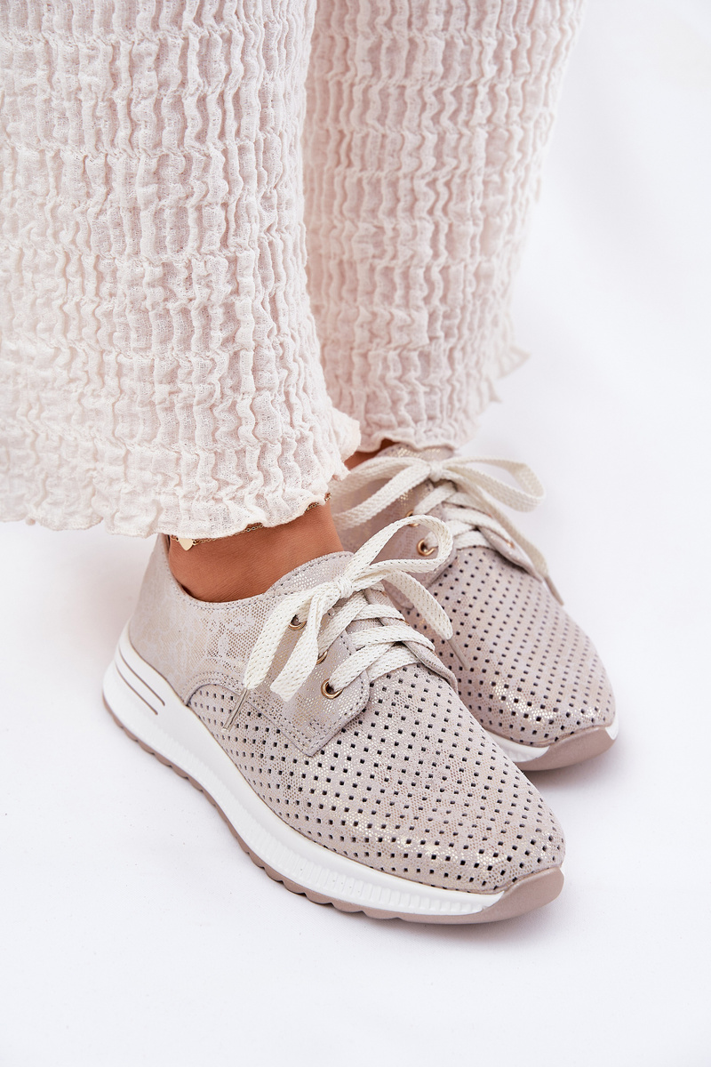 Półbuty Damskie Skórzane Na Platformie Beżowo-Złote Artiker 56C2113