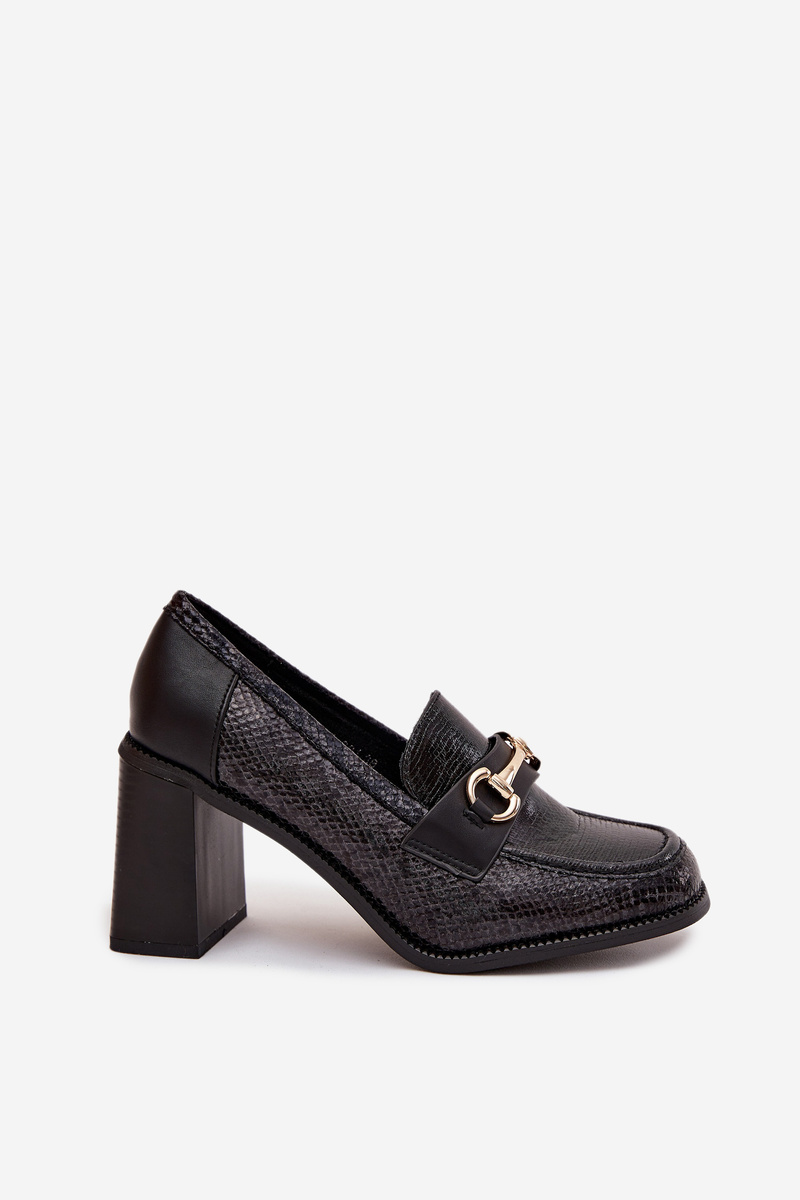 Półbuty Damskie Słupek Tłoczenie Złoty Detal Czarne Novella