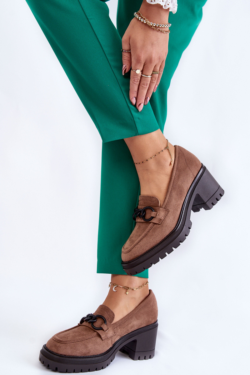 Półbuty Damskie Zamsz Obcas Ciemnobeżowe Sanya