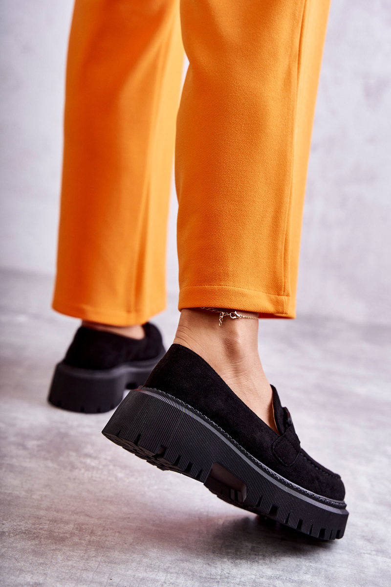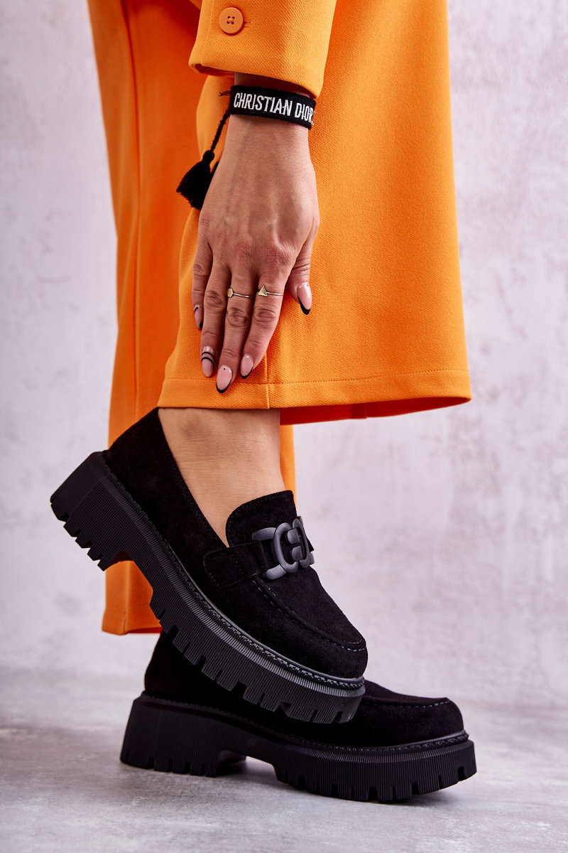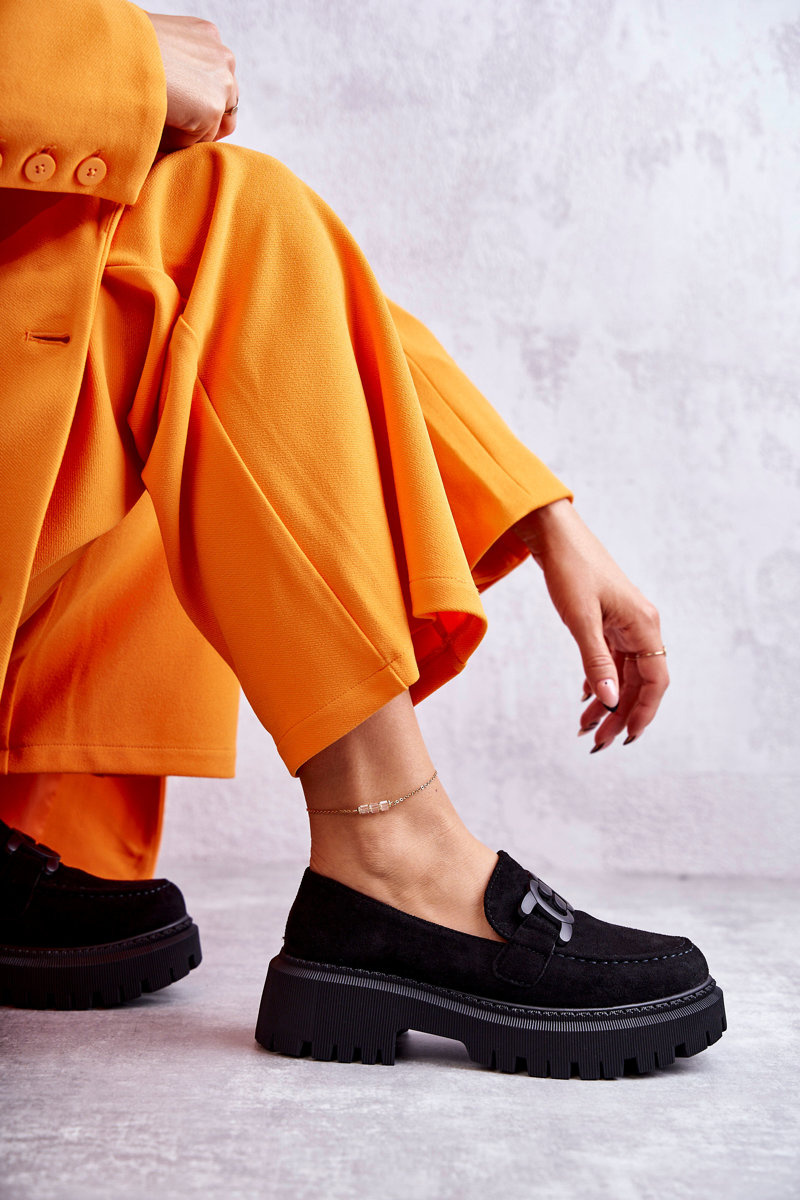 Półbuty Damskie Zamsz Ozdoba Czarne Leeza