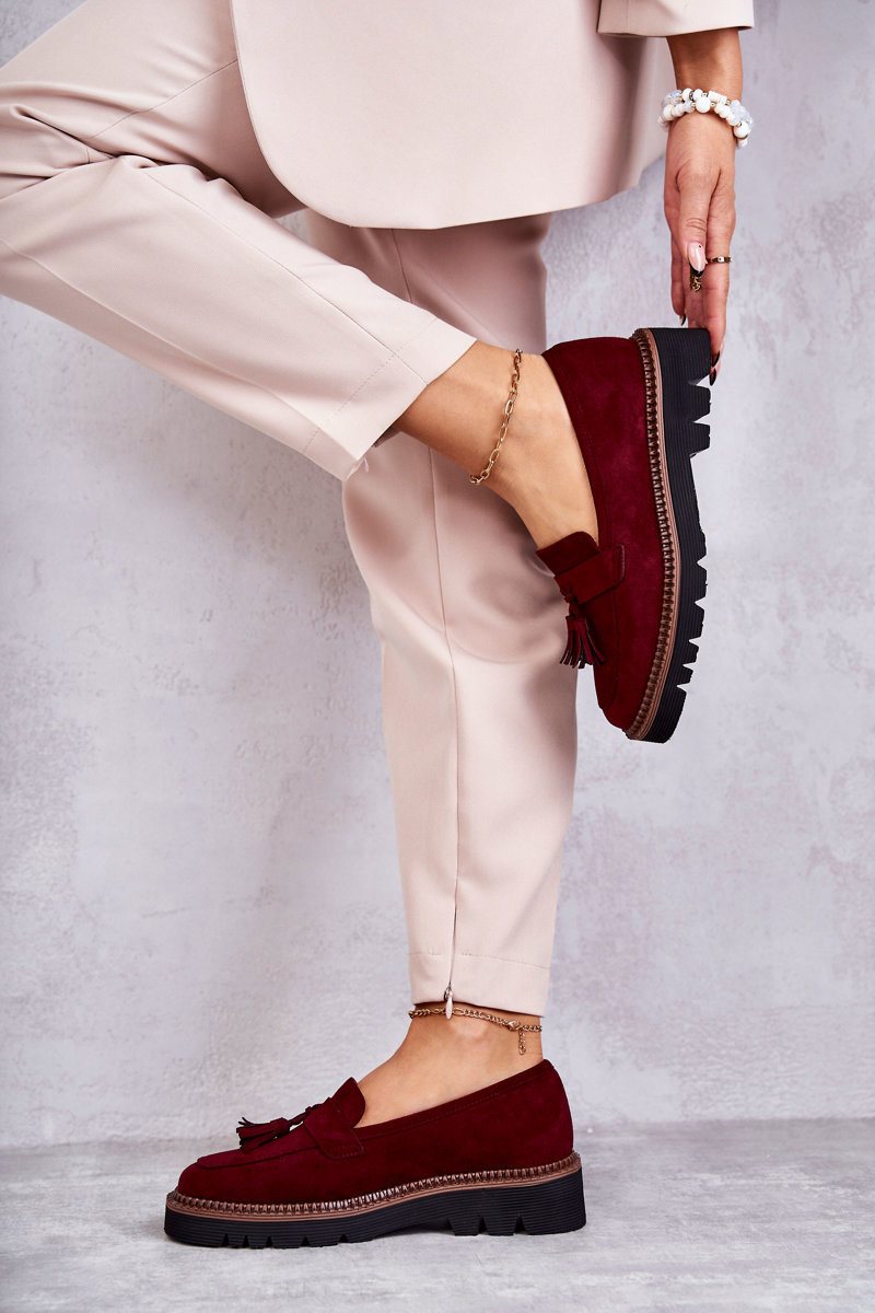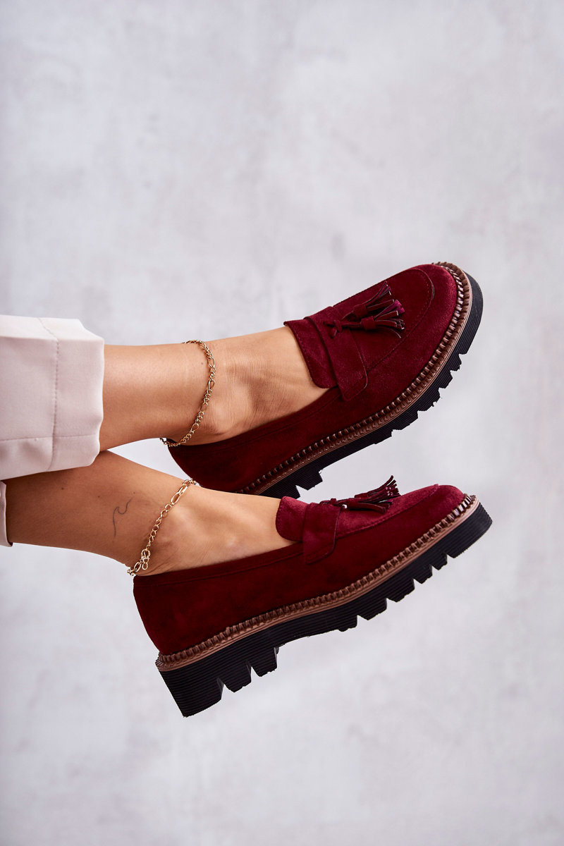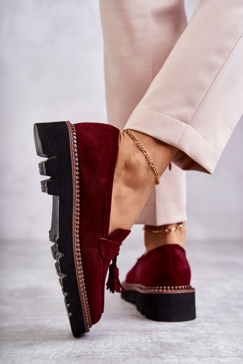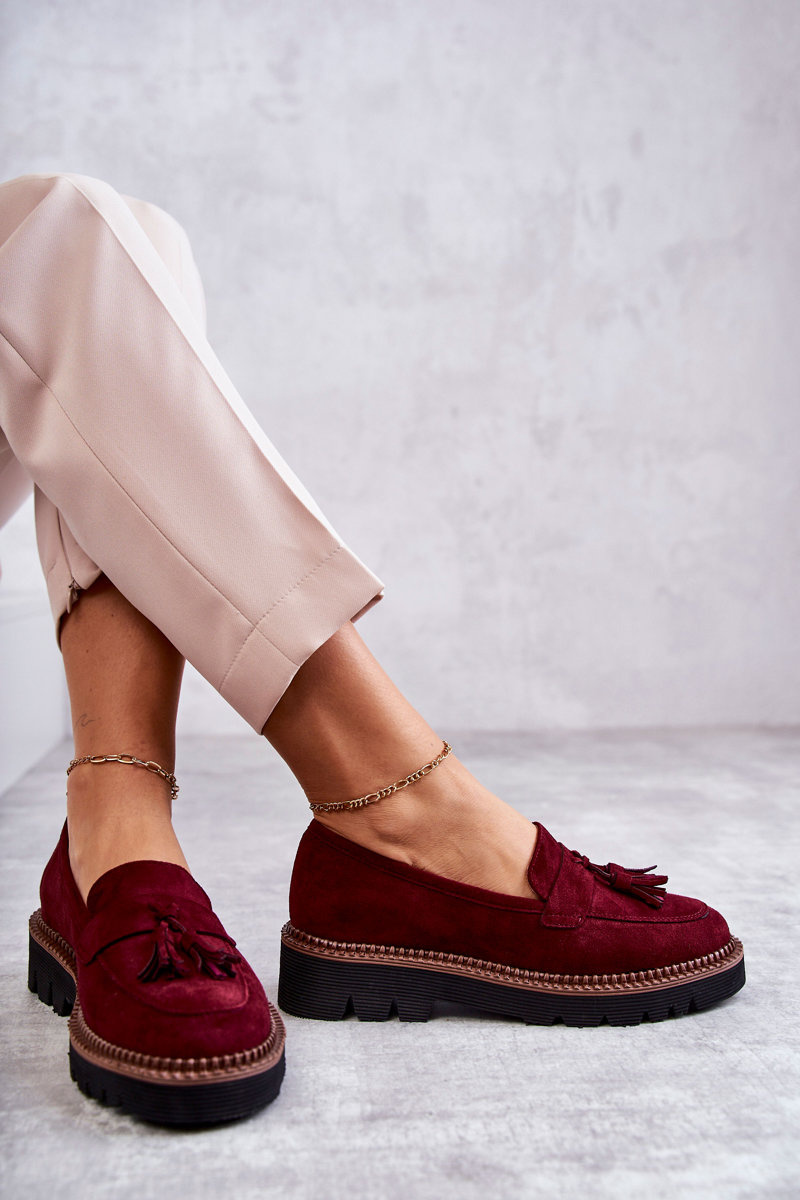 Półbuty Damskie Zamsz Platforma Bordowe Unni