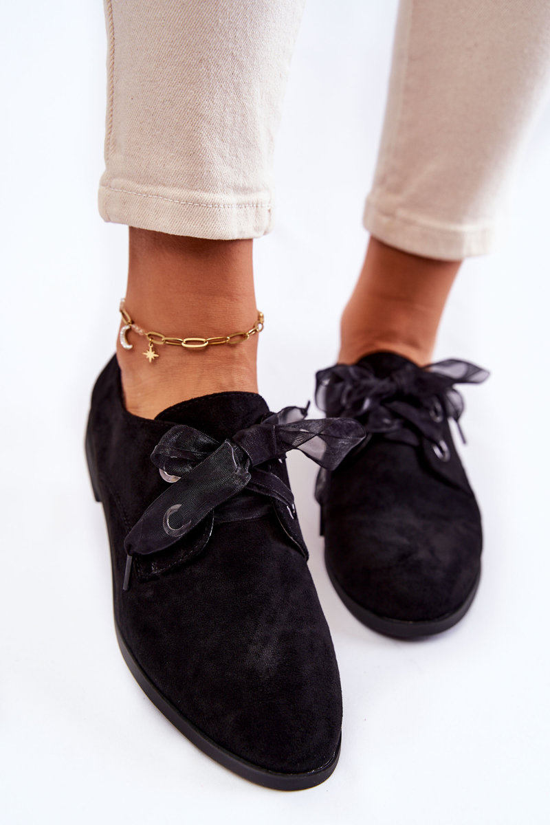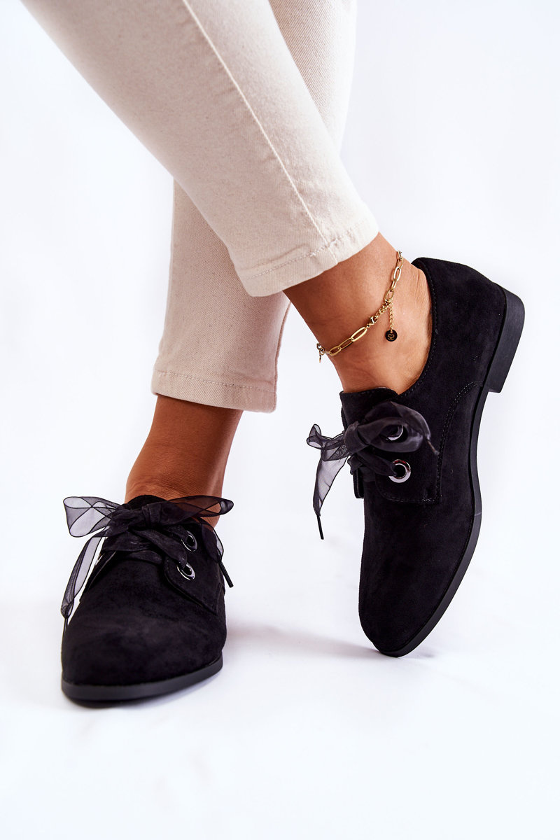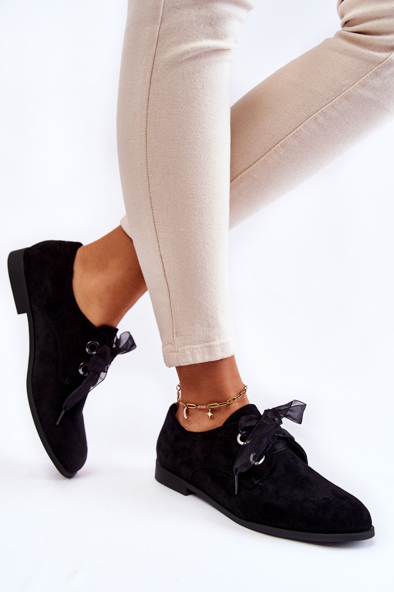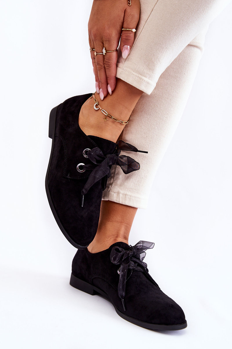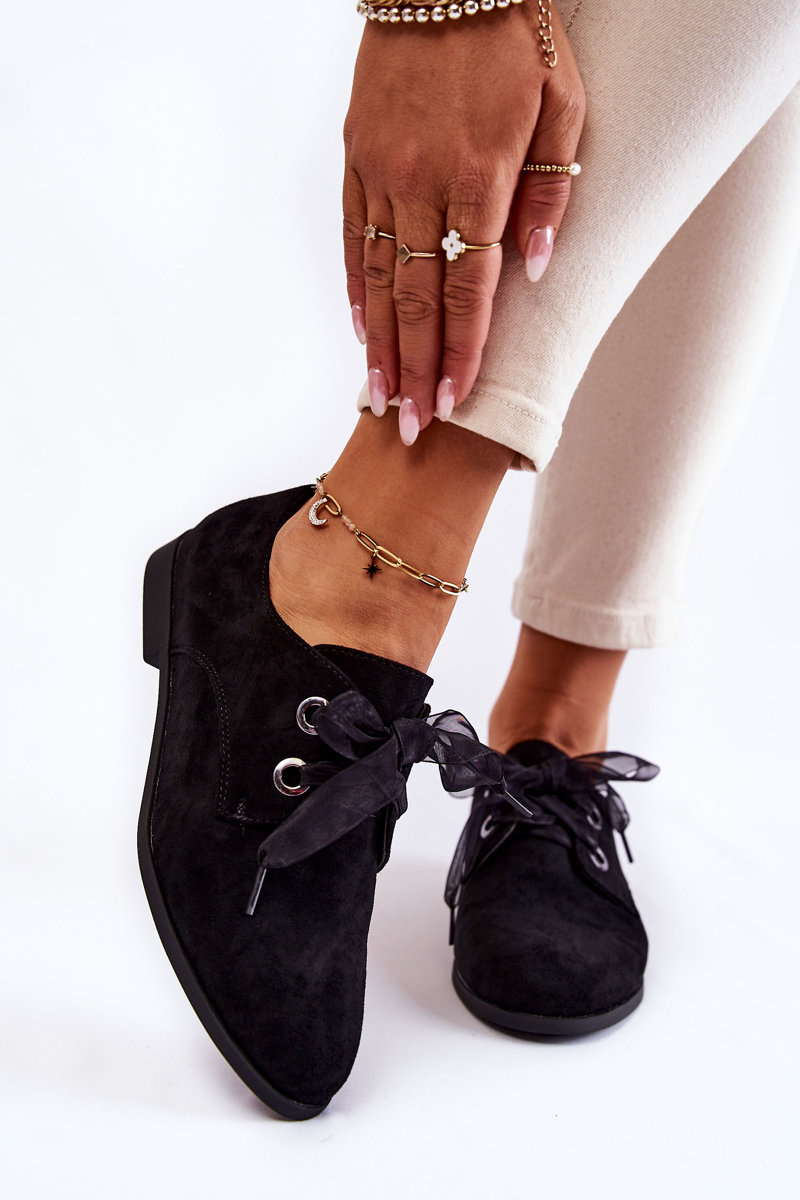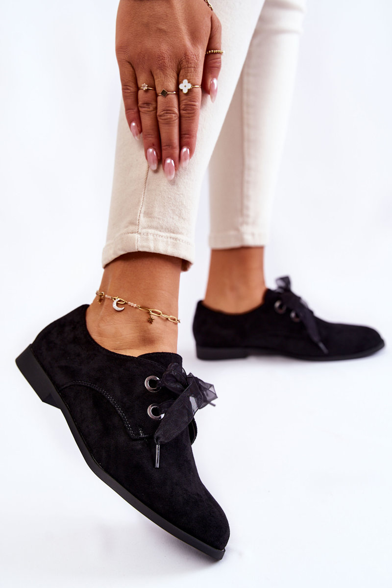 Półbuty Damskie Zamsz Wiązane Czarne La.Fi 210014B-SU
