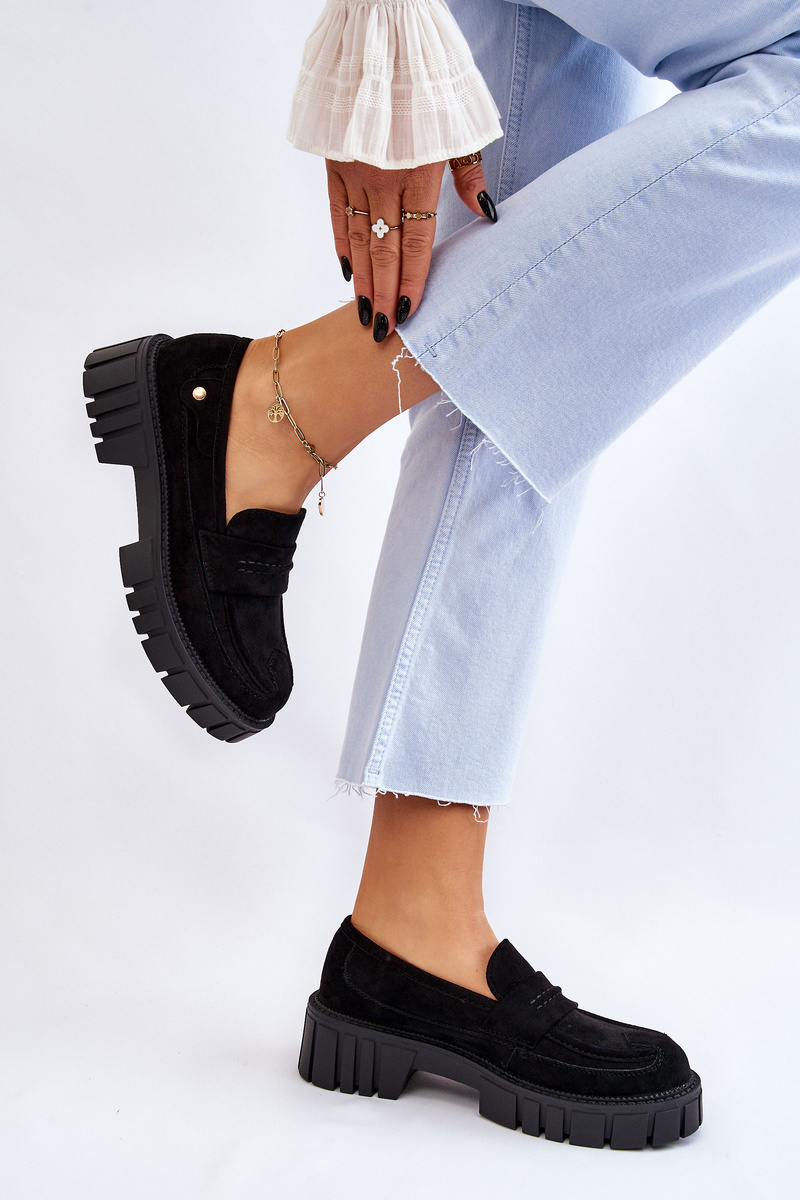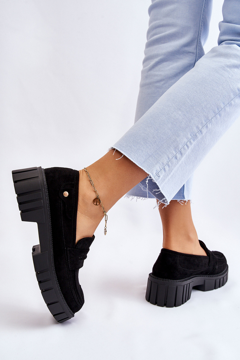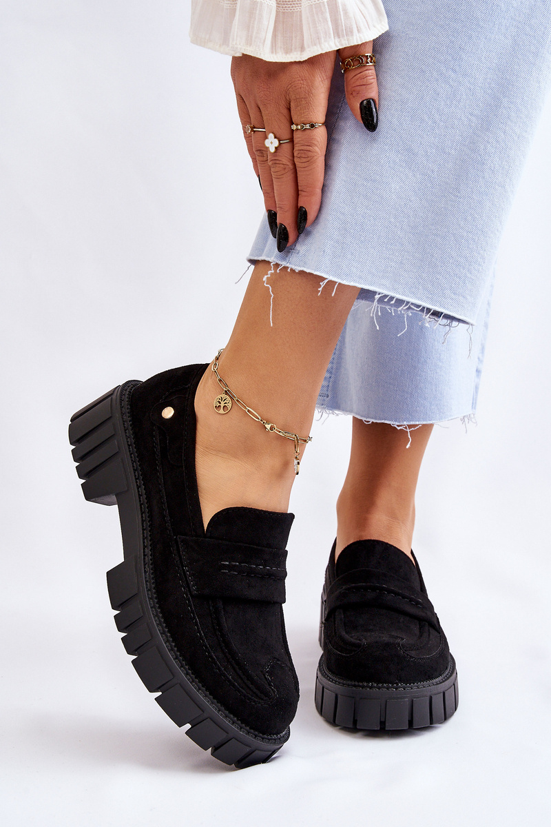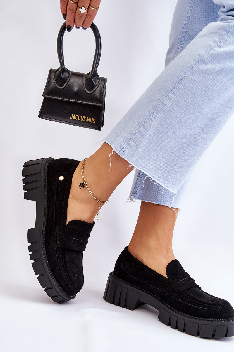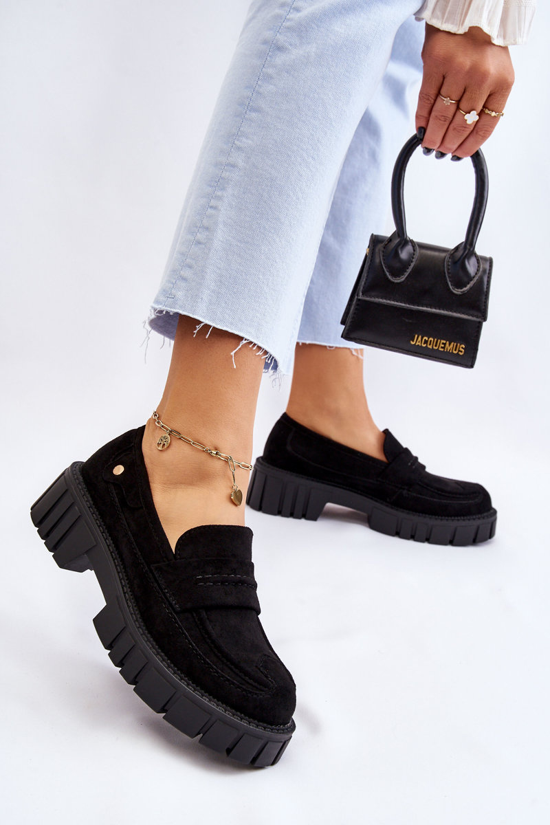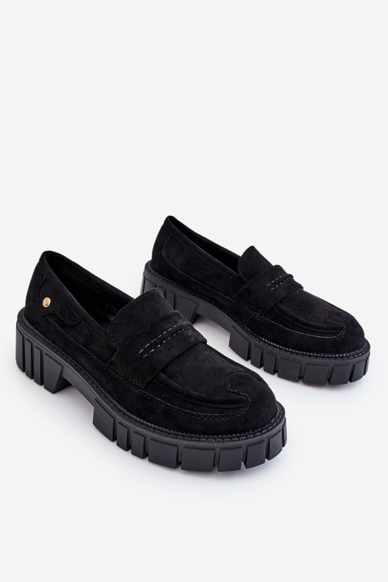 Półbuty Damskie Zamsz Wsuwane Czarne Fiorell