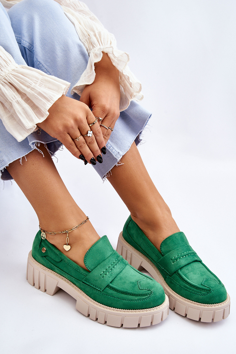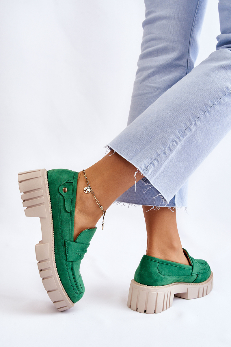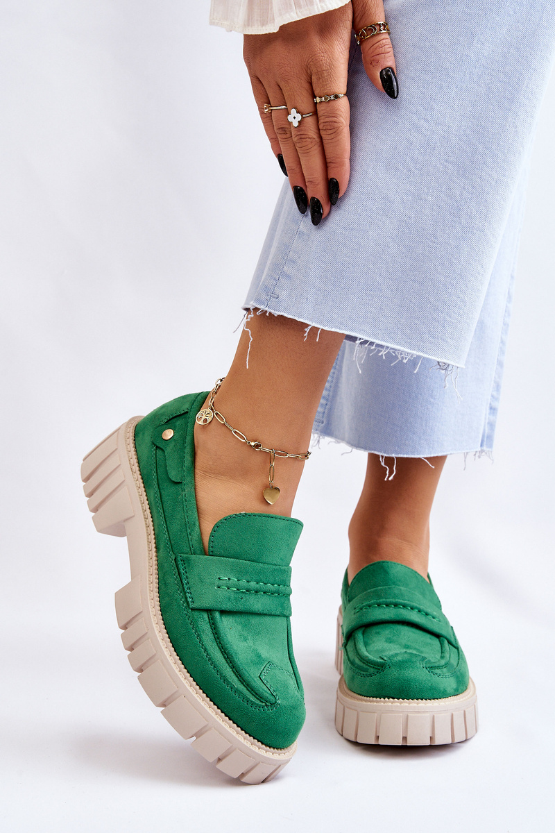 Półbuty Damskie Zamsz Wsuwane Zielone Fiorell
