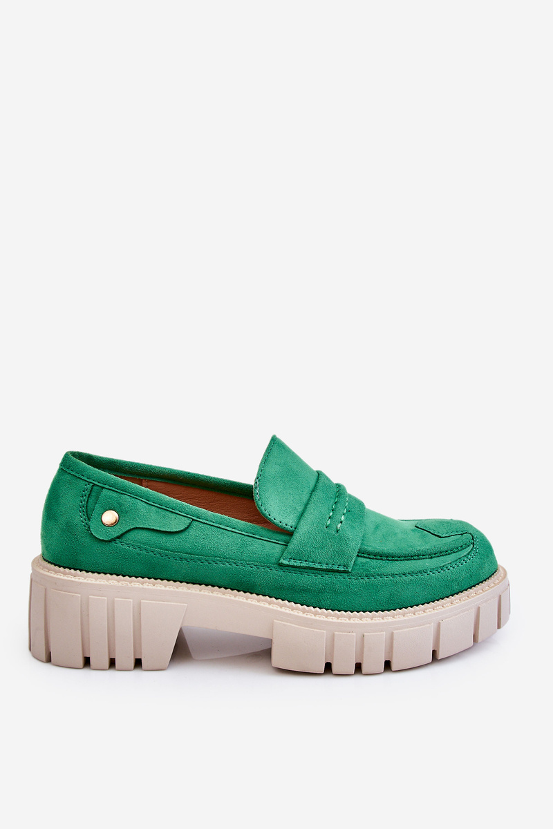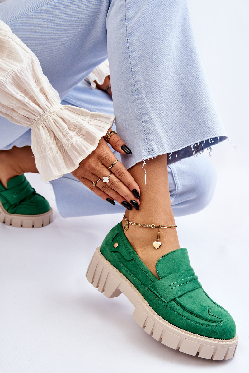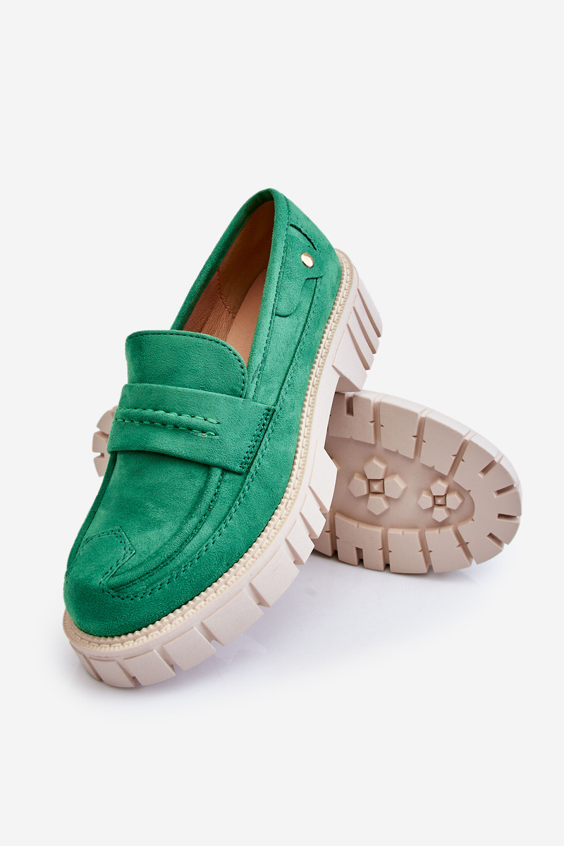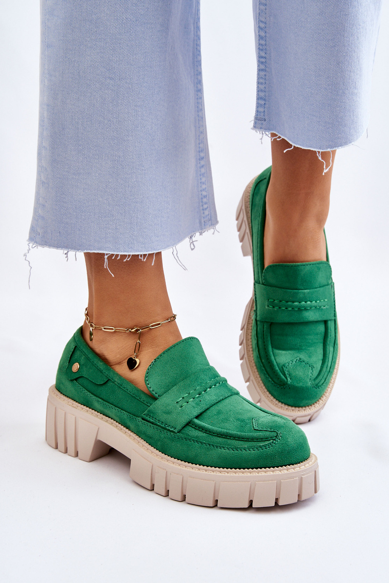 Półbuty Damskie Zamsz Wsuwane Zielone Fiorell