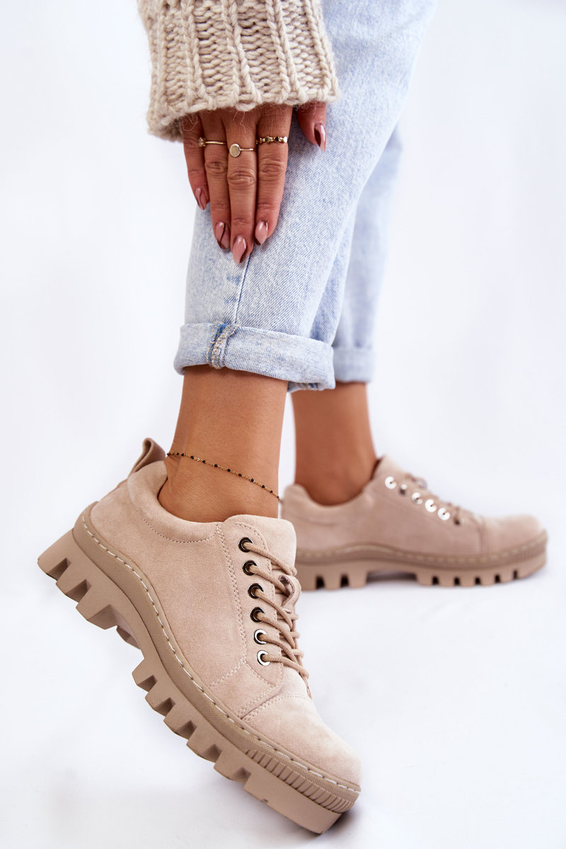 Półbuty Damskie Zamszowe Wiązane Beżowe Mayson