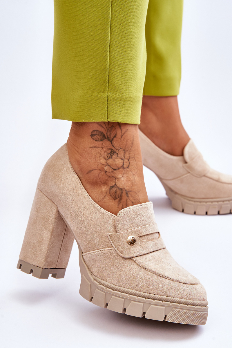 Półbuty Eleganckie Zamsz Obcas Beżowe Mintore