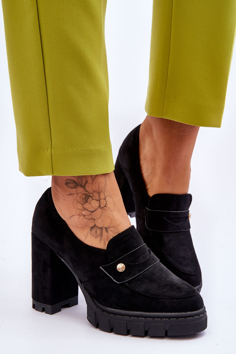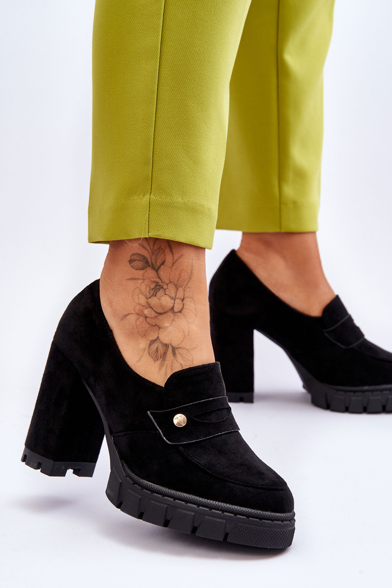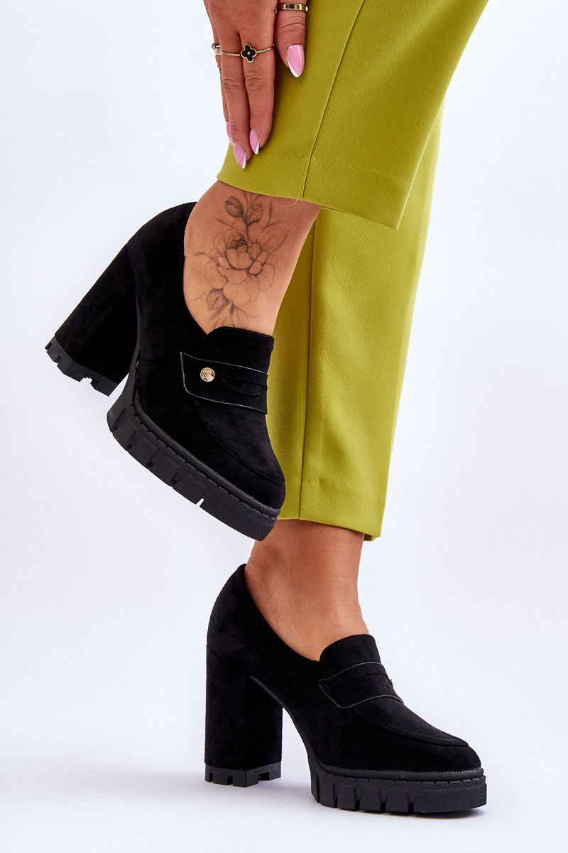 Półbuty Eleganckie Zamsz Obcas Czarne Mintore