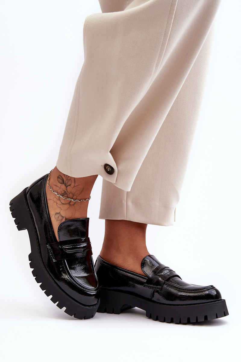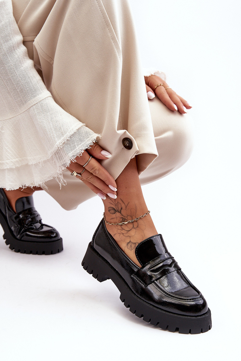 Półbuty Lakierowane Damskie Zdobione Czarne Annella YL166
