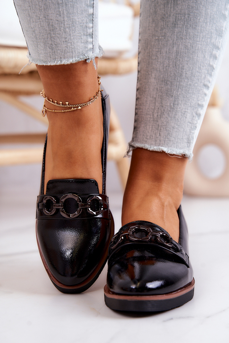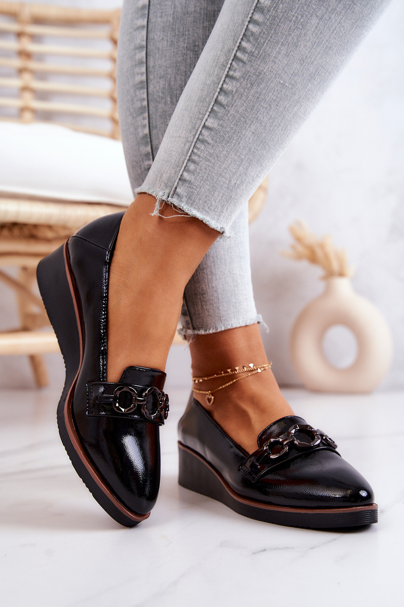 Półbuty Lakierowane Skórzane Koturn Czarne Melodie