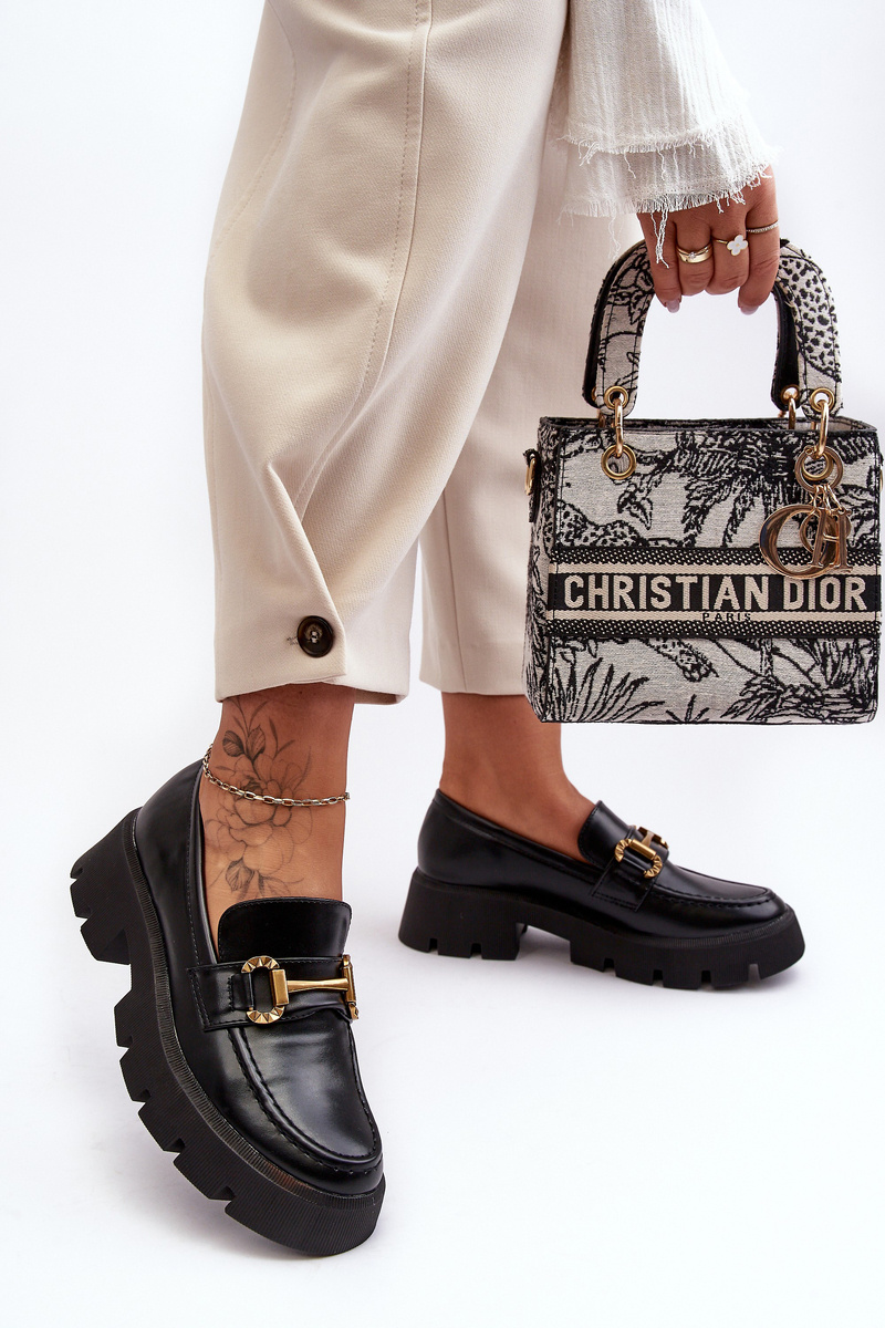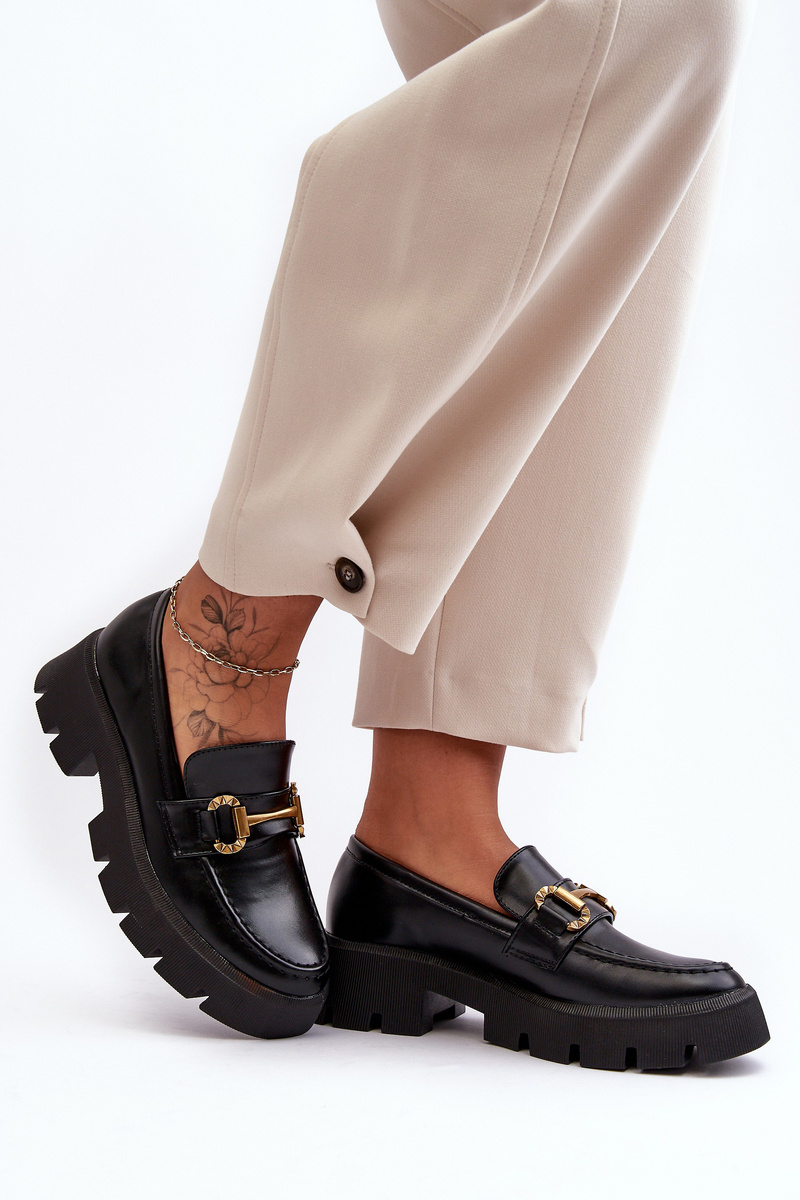 Półbuty Loafery Damskie Ozdoba Czarne Peuria 2644-1