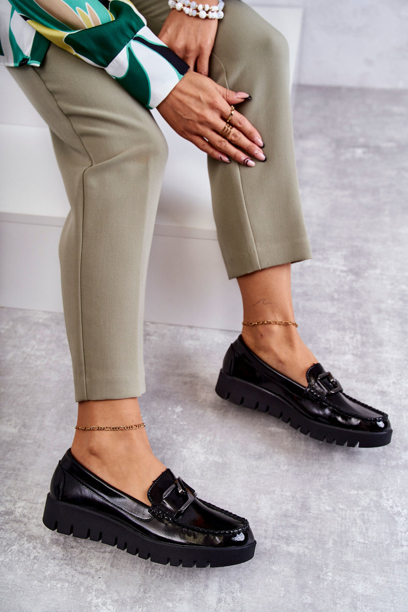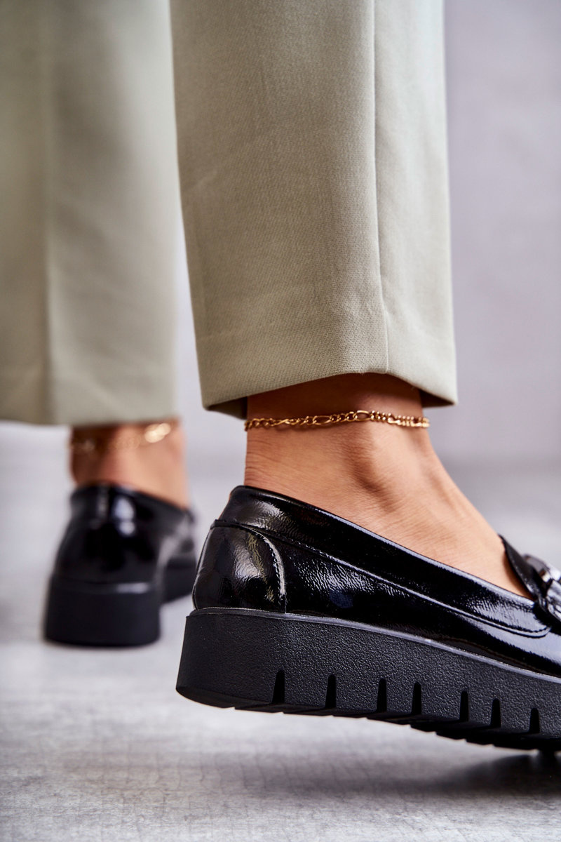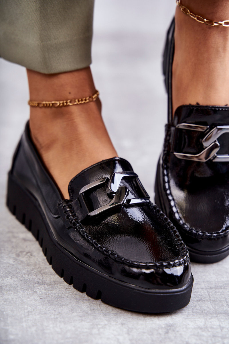 Półbuty Loafery Modne Skóra Czarne Kjersti