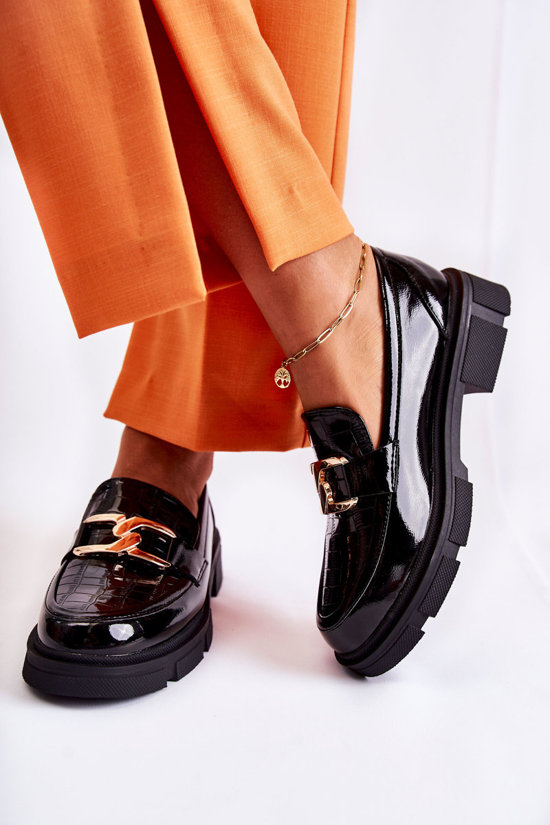 Półbuty Loafery Modne Skóra Czarne Loveliness
