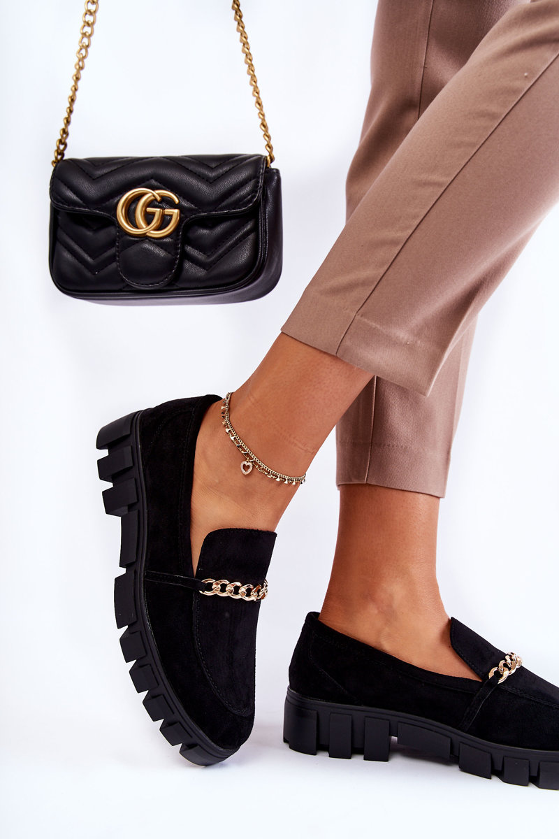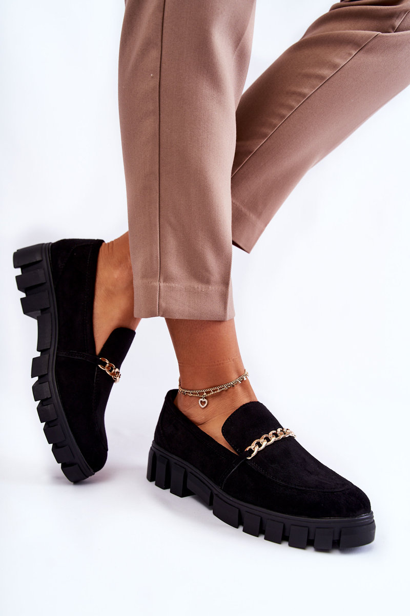 Półbuty Loafery Zamsz Łańcuch Czarne Anne