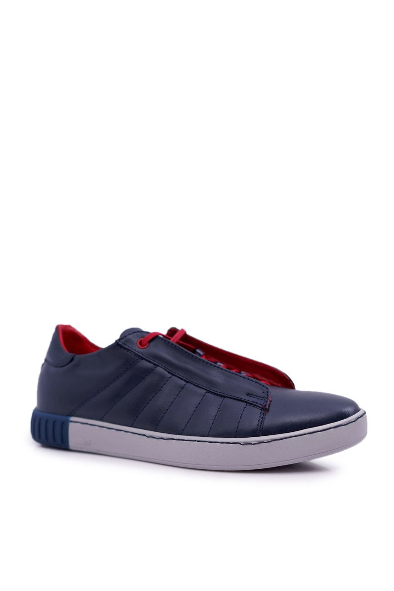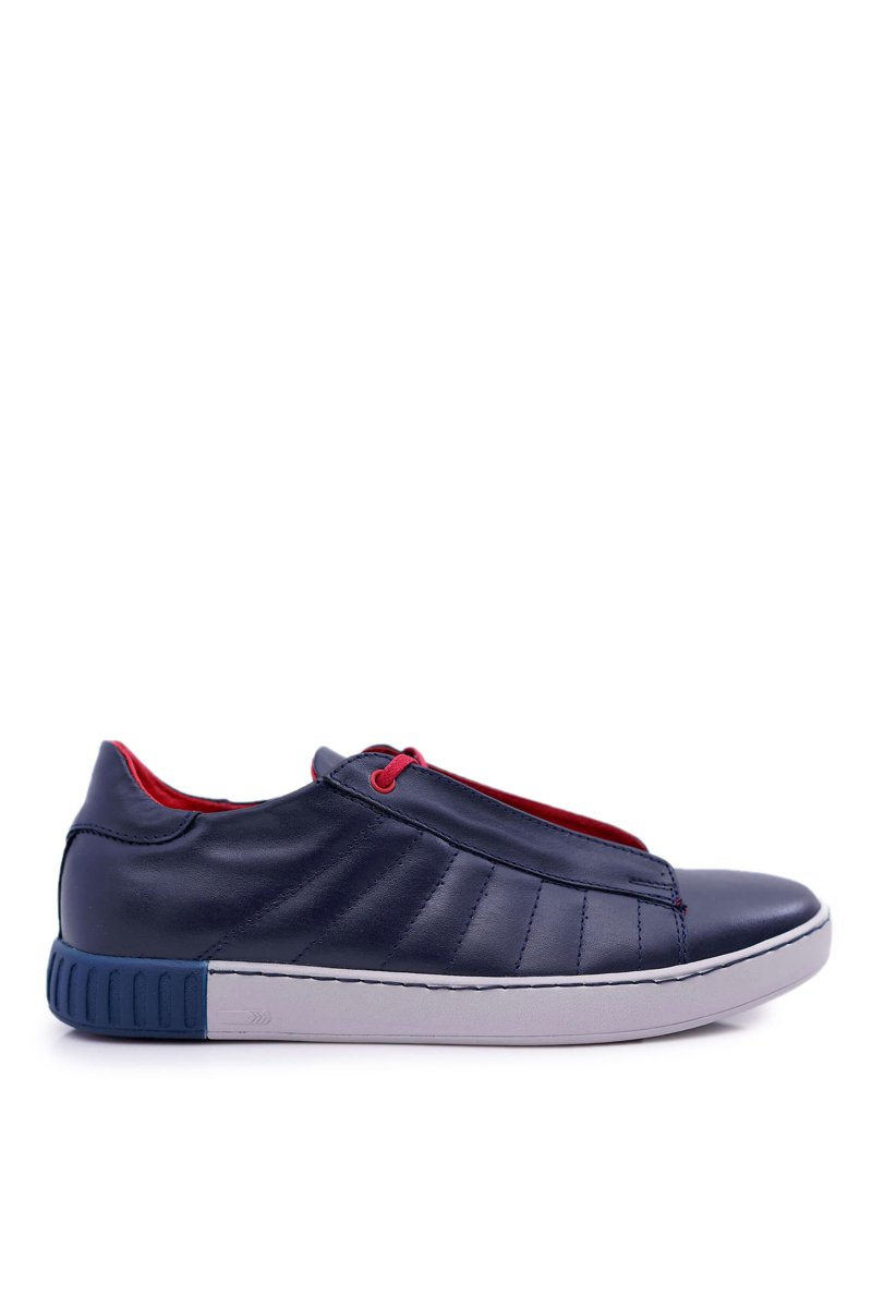 Półbuty Męskie Bednarek Skórzane Sportowe Bez Oczek Granatowe Geos