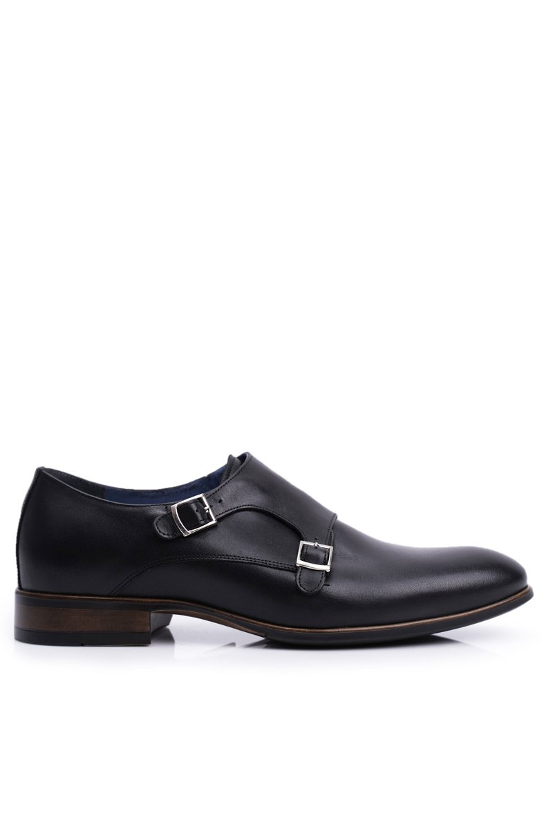 Półbuty Męskie Skórzane Monk Nikopol Czarne 1720