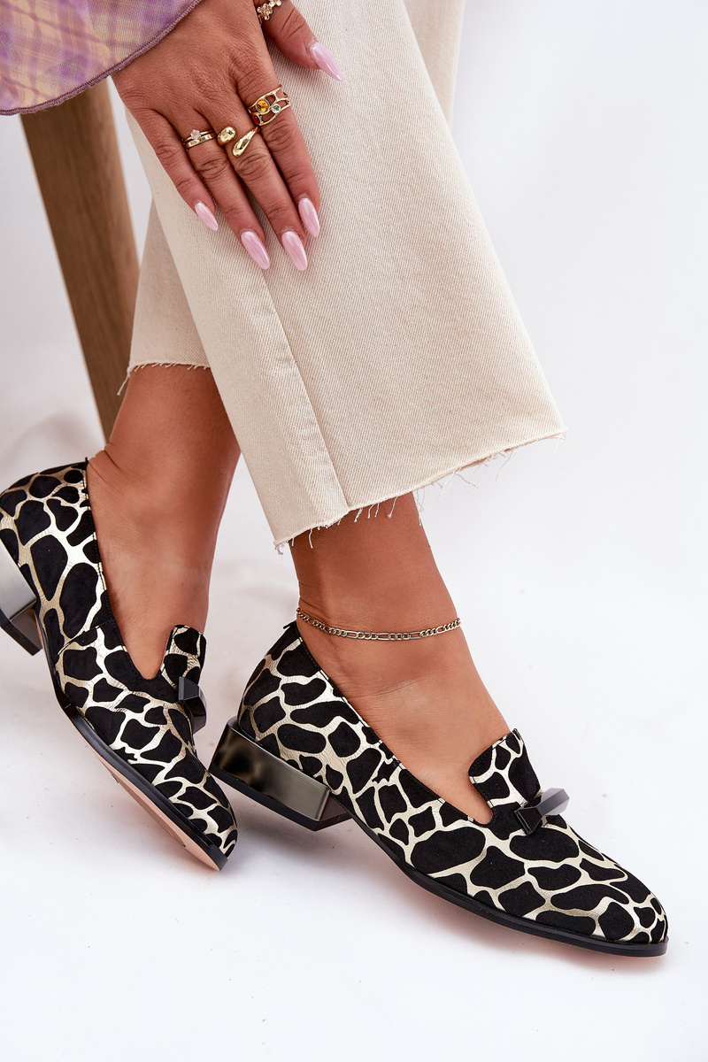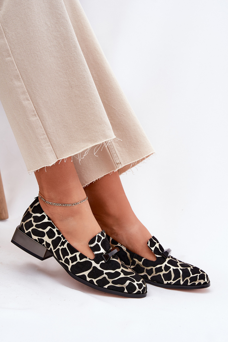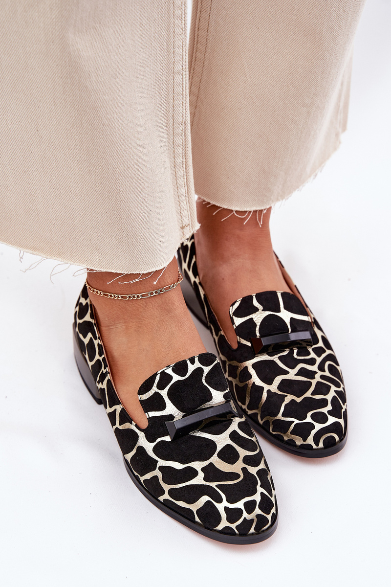 Półbuty Mokasyny Damskie Zamszowe Eleganckie Z Ozdobą Czarno-Złote D&A LZ51-505