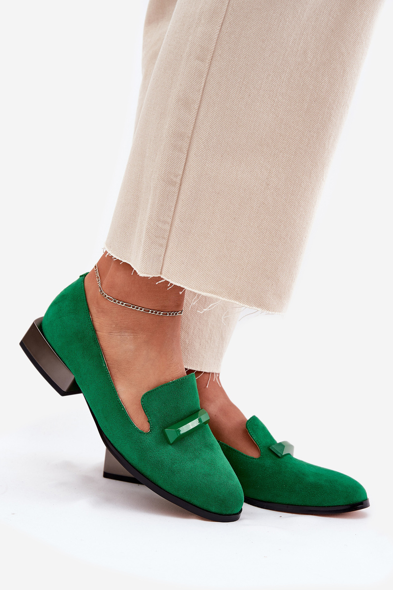 Półbuty Mokasyny Damskie Zamszowe Eleganckie Z Ozdobą Zielone D&A LZ51-505