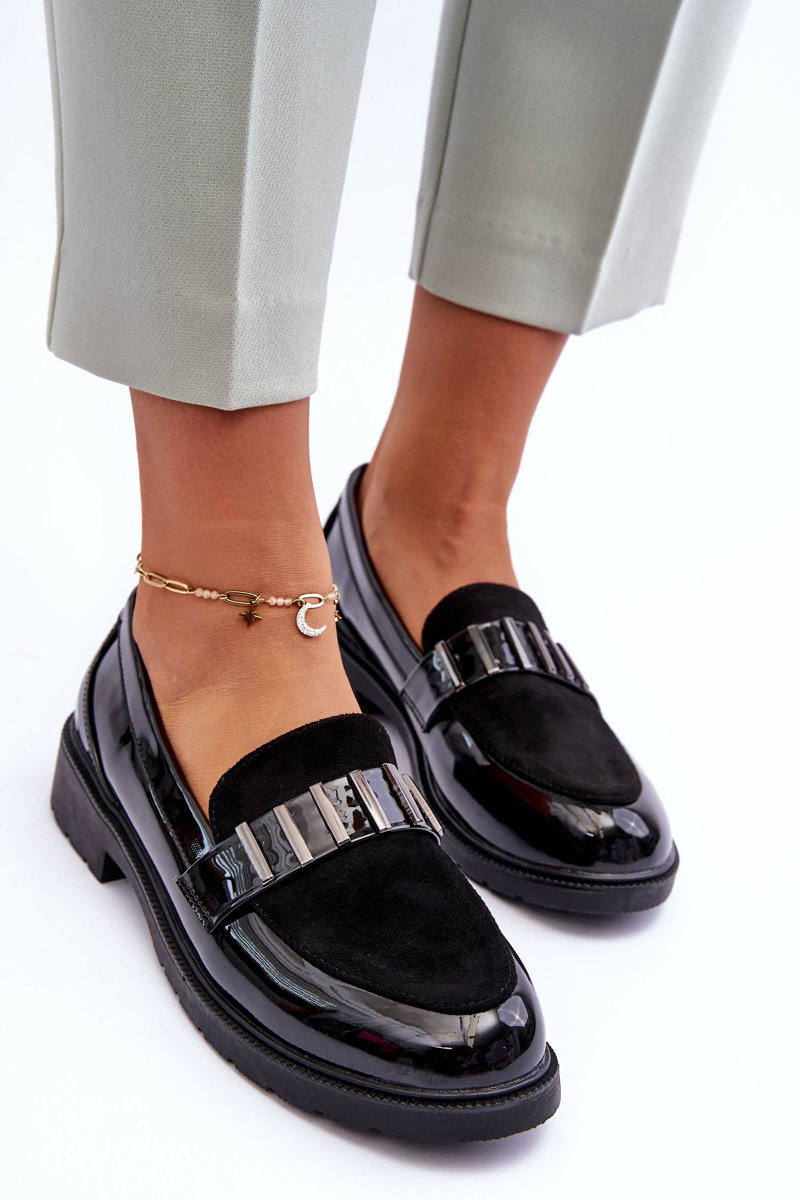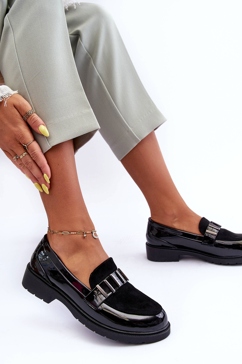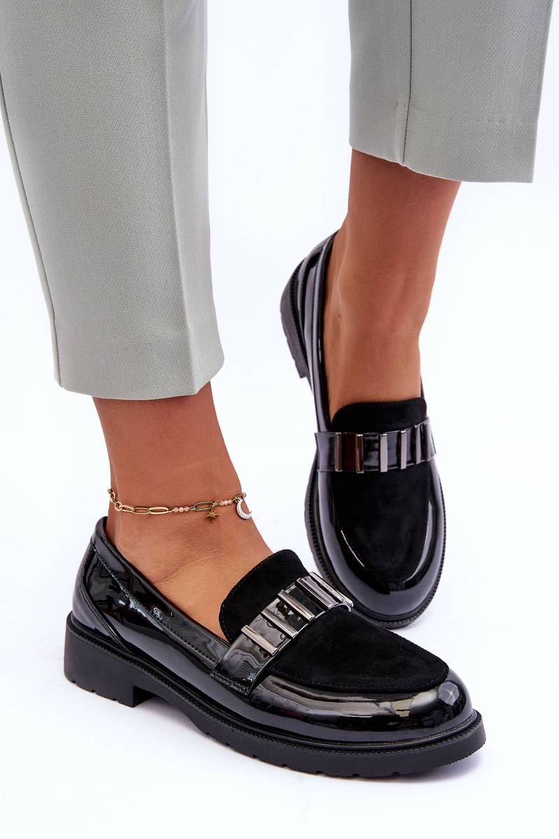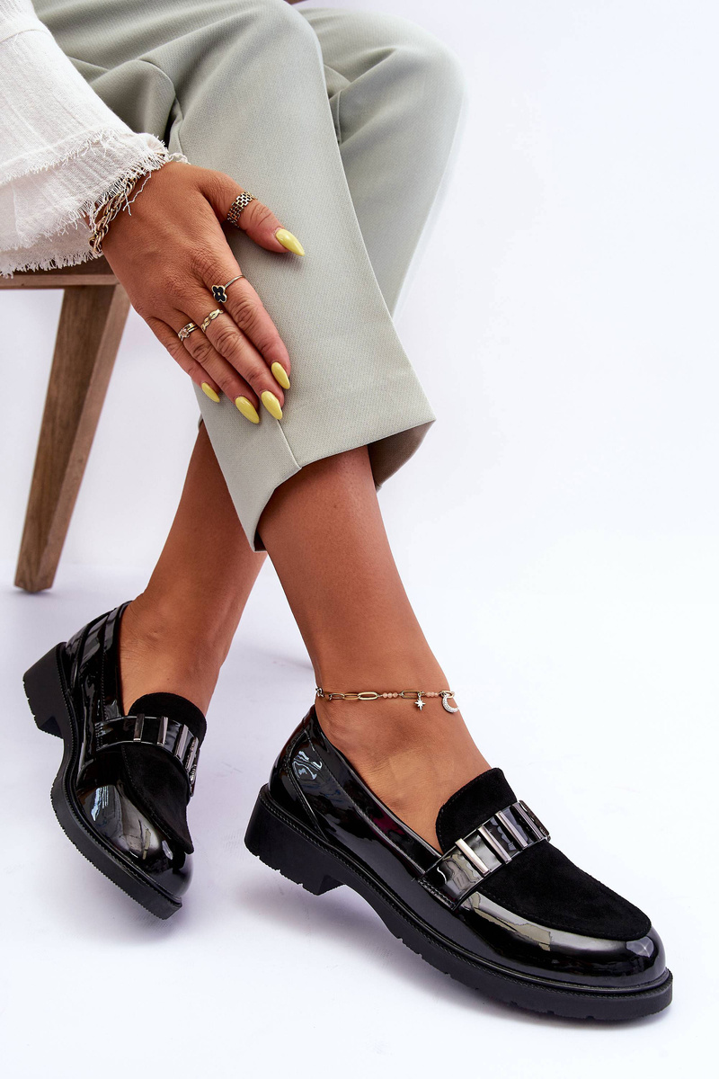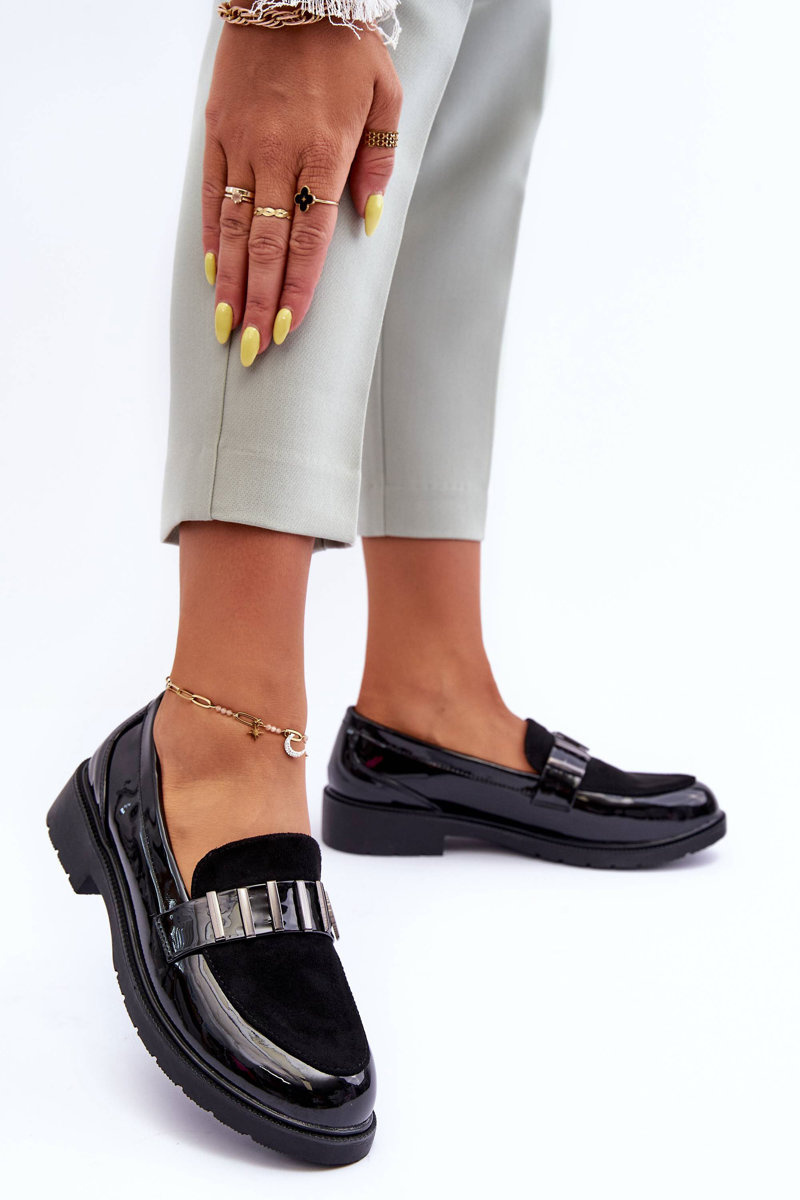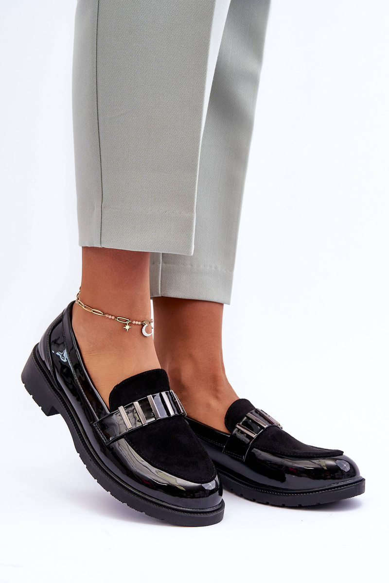 Półbuty Mokasyny Lakierowane Ozdoba Czarne S.Barski HY317