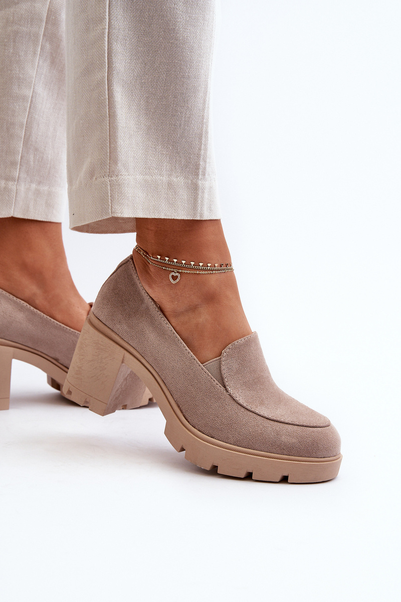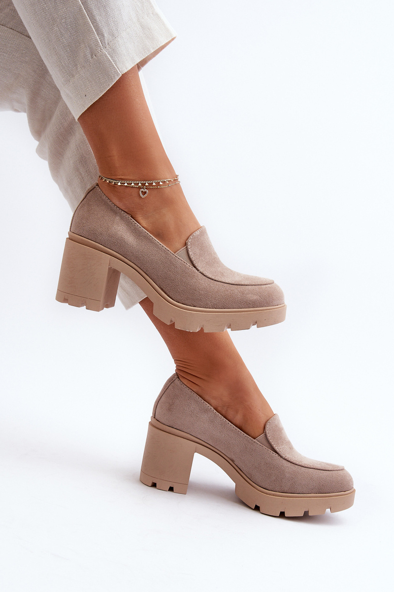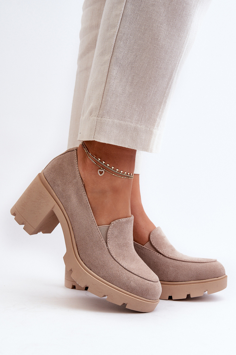 Półbuty Obcas Platforma Eko Zamsz Damskie Beżowe Arablosa RMR23108-3
