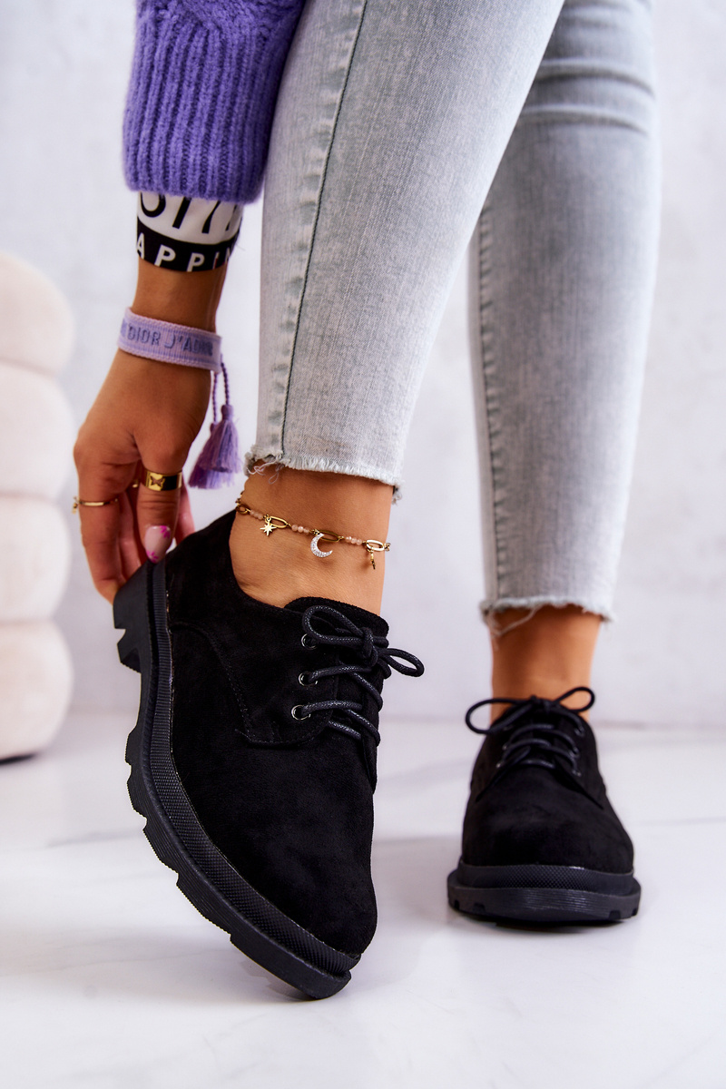 Półbuty Oxfordy Zamszowe Damskie Klasyczne Wiązane Czarne Colton