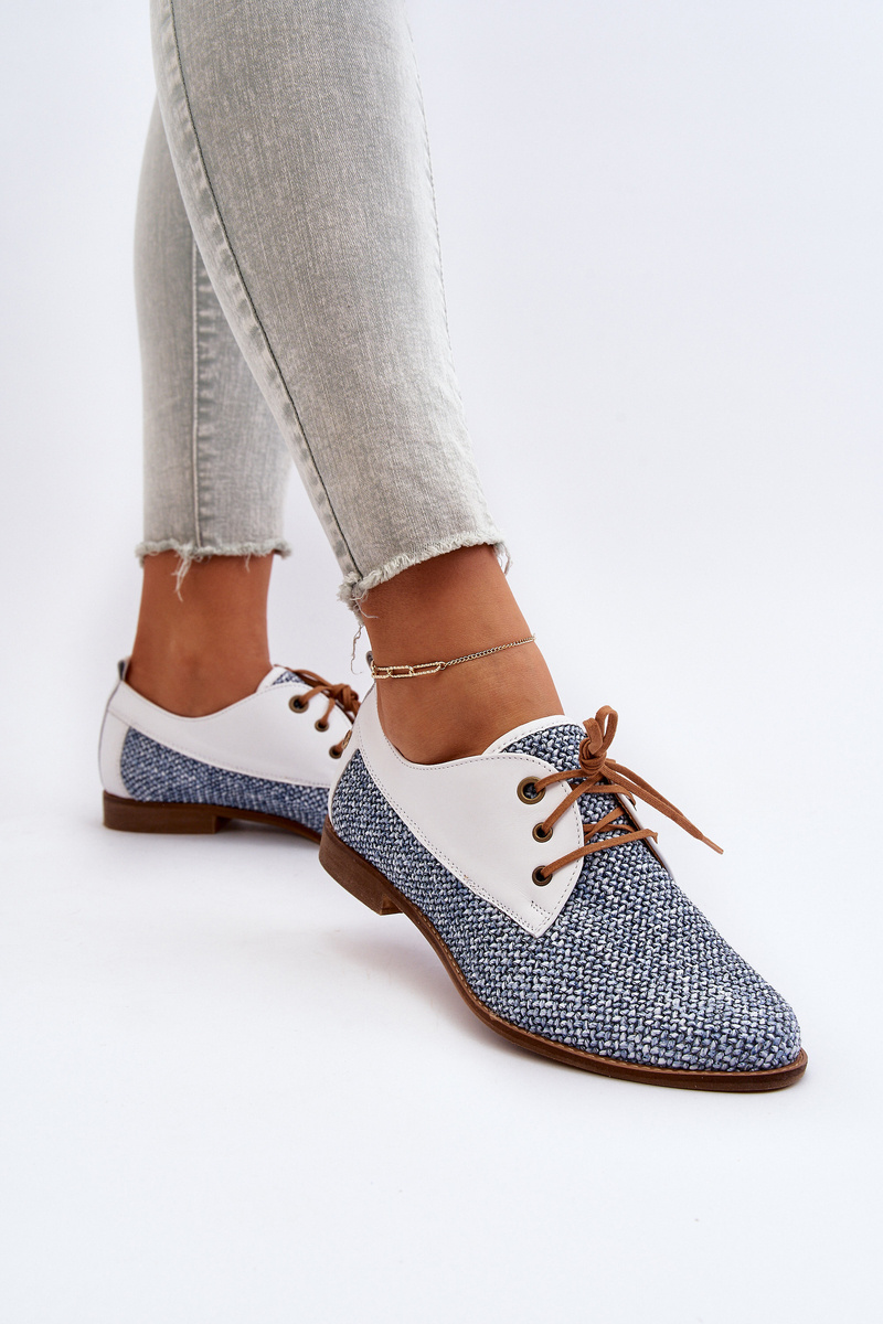 Półbuty Skóra Damskie Płaski Obcas Niebieskie Maciejka 06461-17