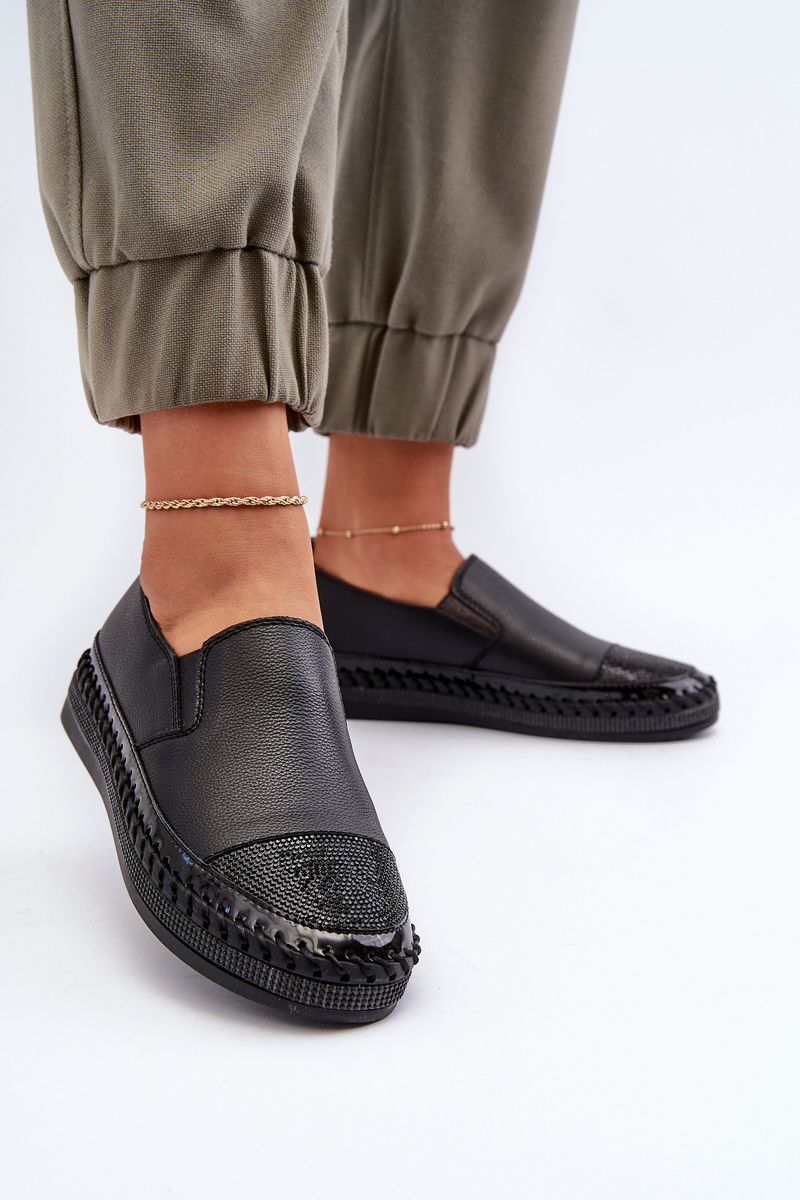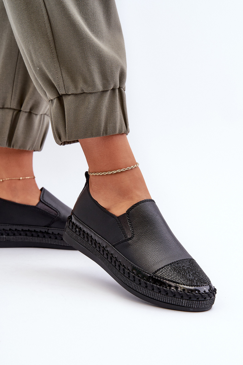 Półbuty idealnie sprawdzą się w sezonie wiosenno-jesiennym. Buty te pasują zarówno do eleganckich, jak i casualowych stylizacji. Klasyczne półbuty powinny znaleźć się w Twojej szafie! Wsuwane półbuty wykonane ze skóry naturalnej. Osadzone na platformie. Modne zdobienie nadaje wyjątkowego uroku. Idealne dla kobiet ceniących sobie oryginalny styl i wygodę!