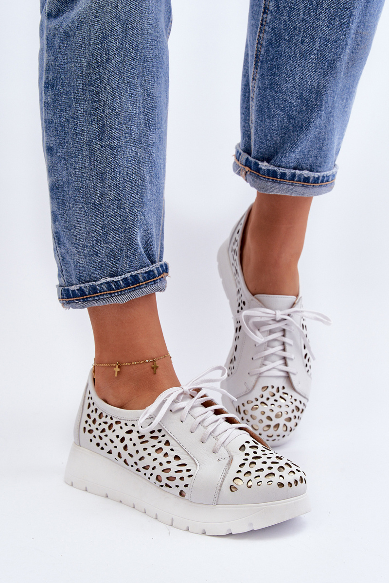 Półbuty Skórzane Ażurowe Damskie Jasnoszare 2821