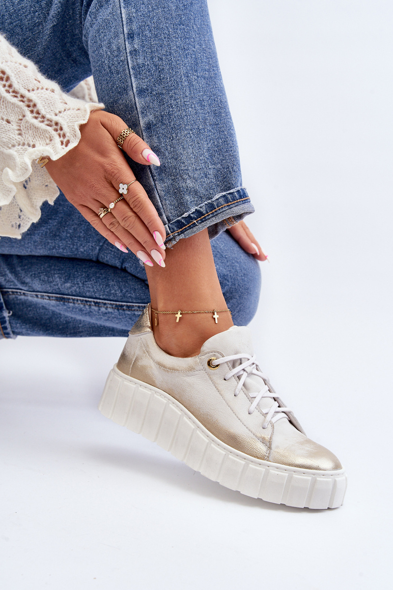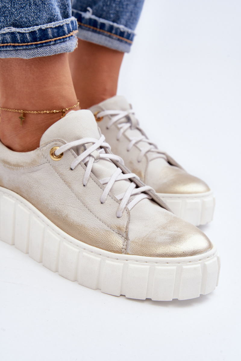 Półbuty Skórzane Damskie Gruba Podeszwa Złote Zazoo 2919