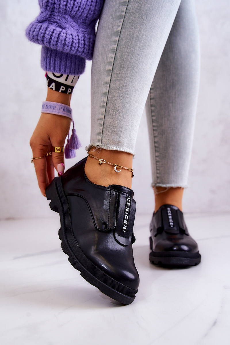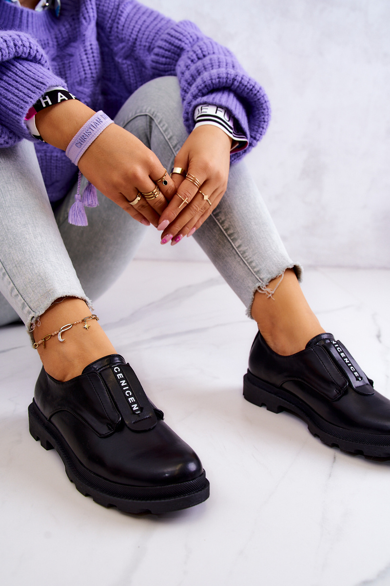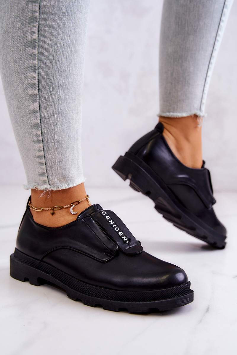 Półbuty Skórzane Damskie Wsuwane Czarne Kirstee