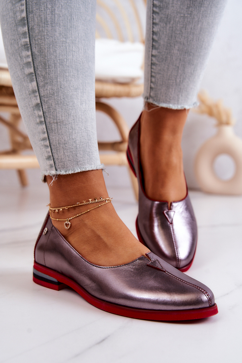 Półbuty Skórzane Maciejka Srebrne 05035-42