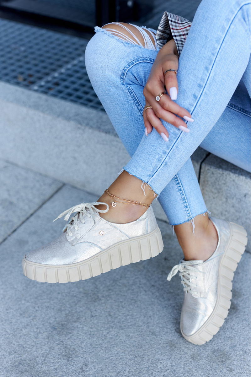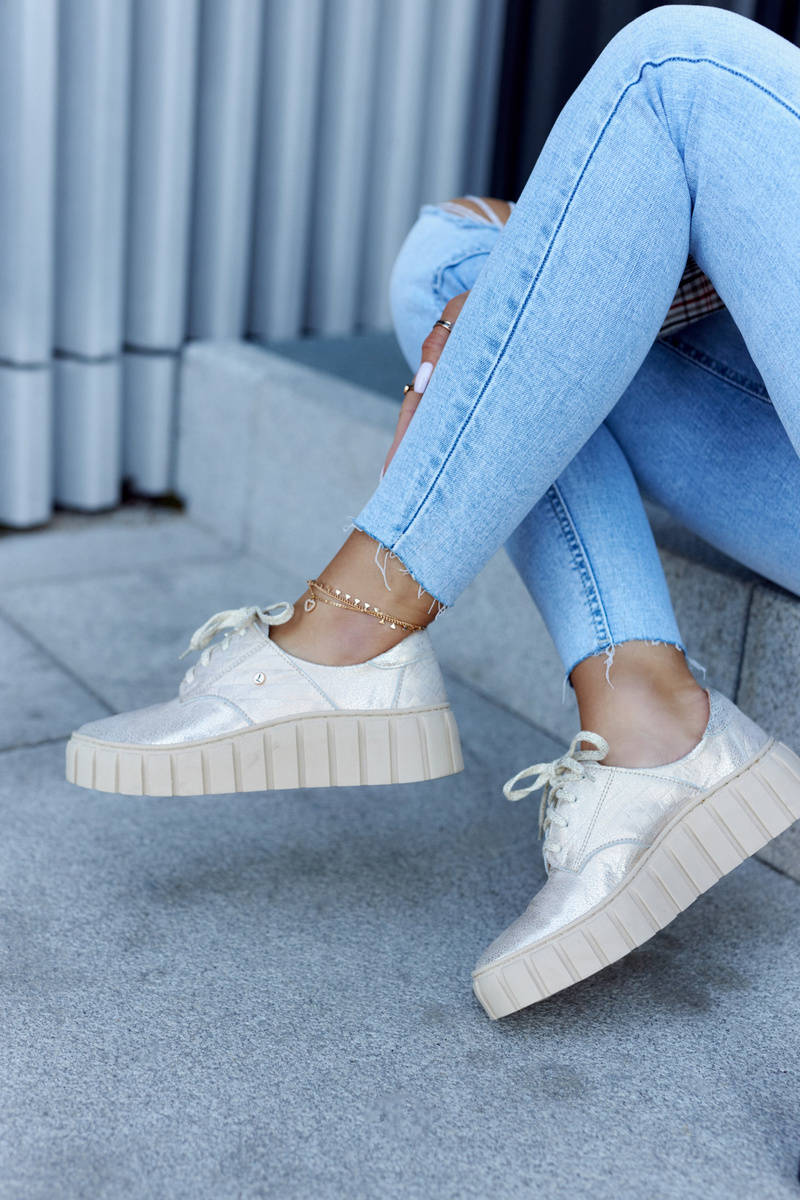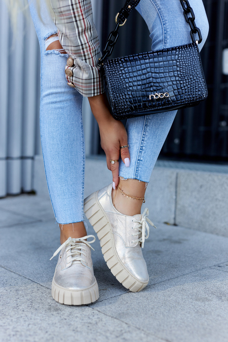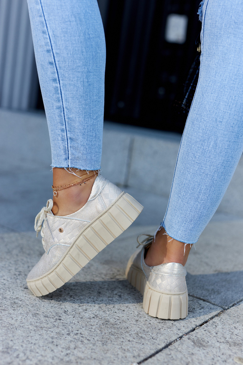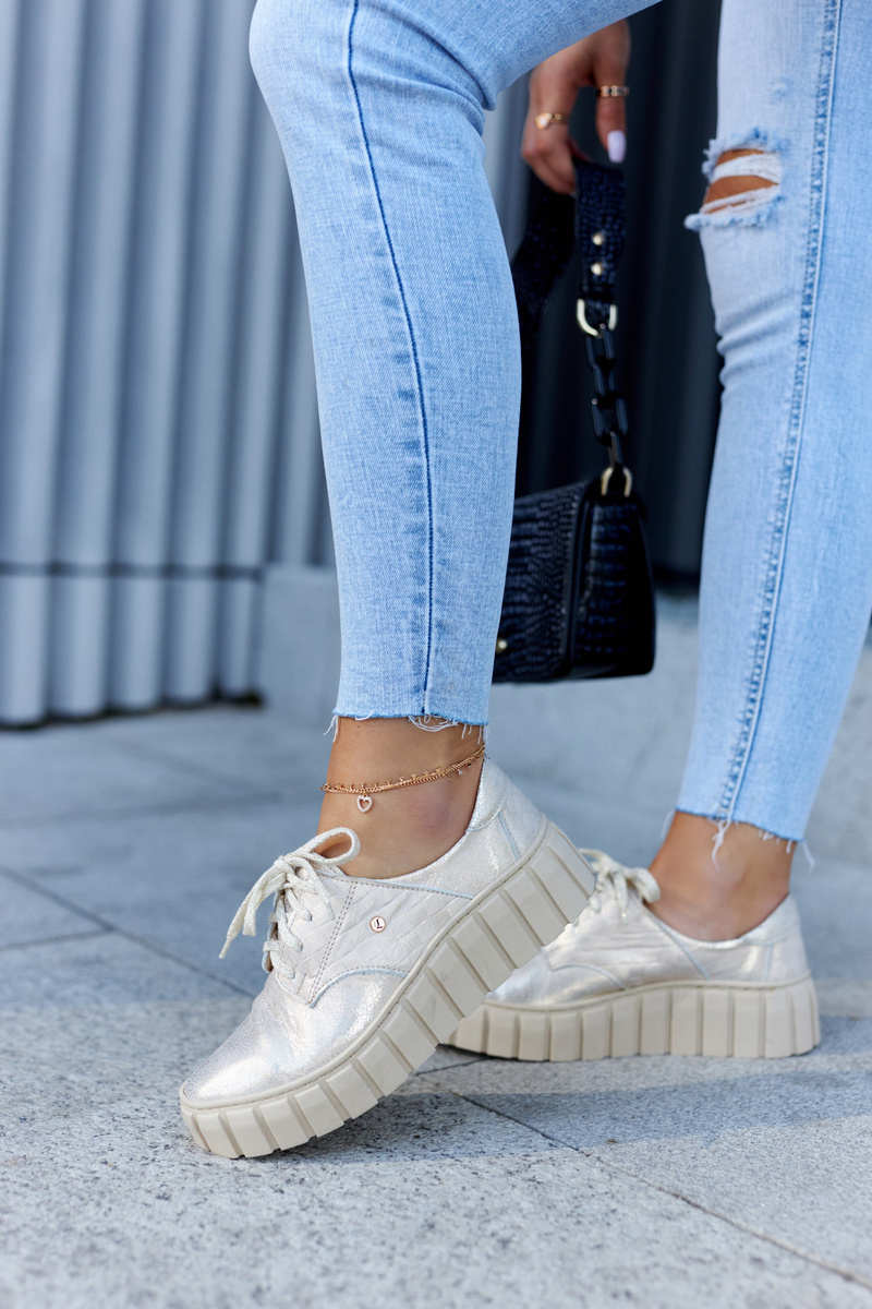 Półbuty Skórzane Masywna Platforma Beżowo-Złote Hypnosis
