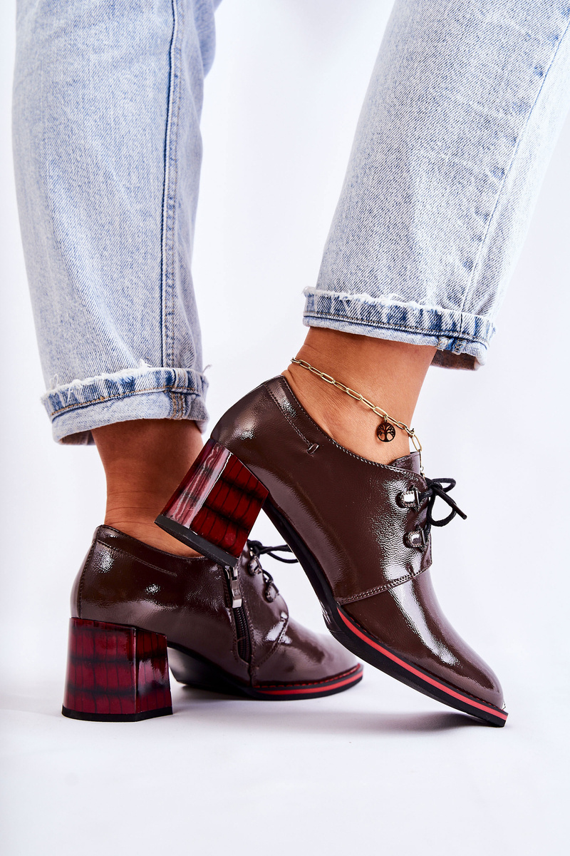 Półbuty Suwak Wiązane Brązowo-Czerwone Laurosa