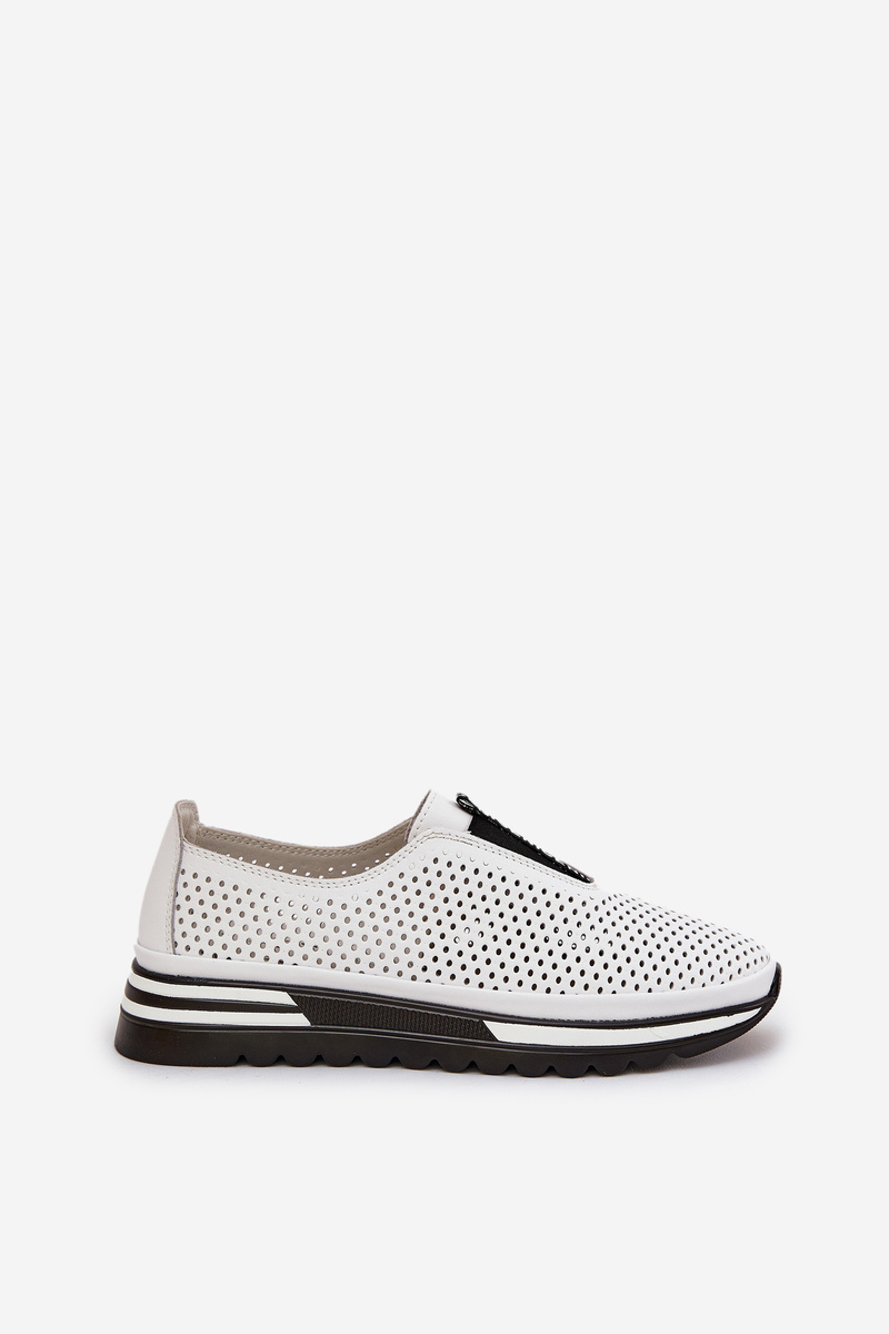 Półbuty Wsuwane Damskie Skórzane Białe S.Barski LR51-672