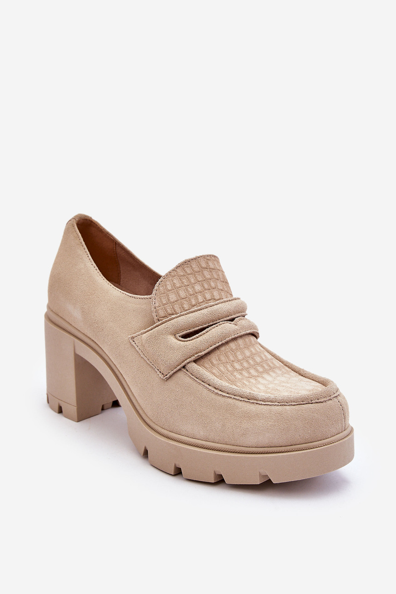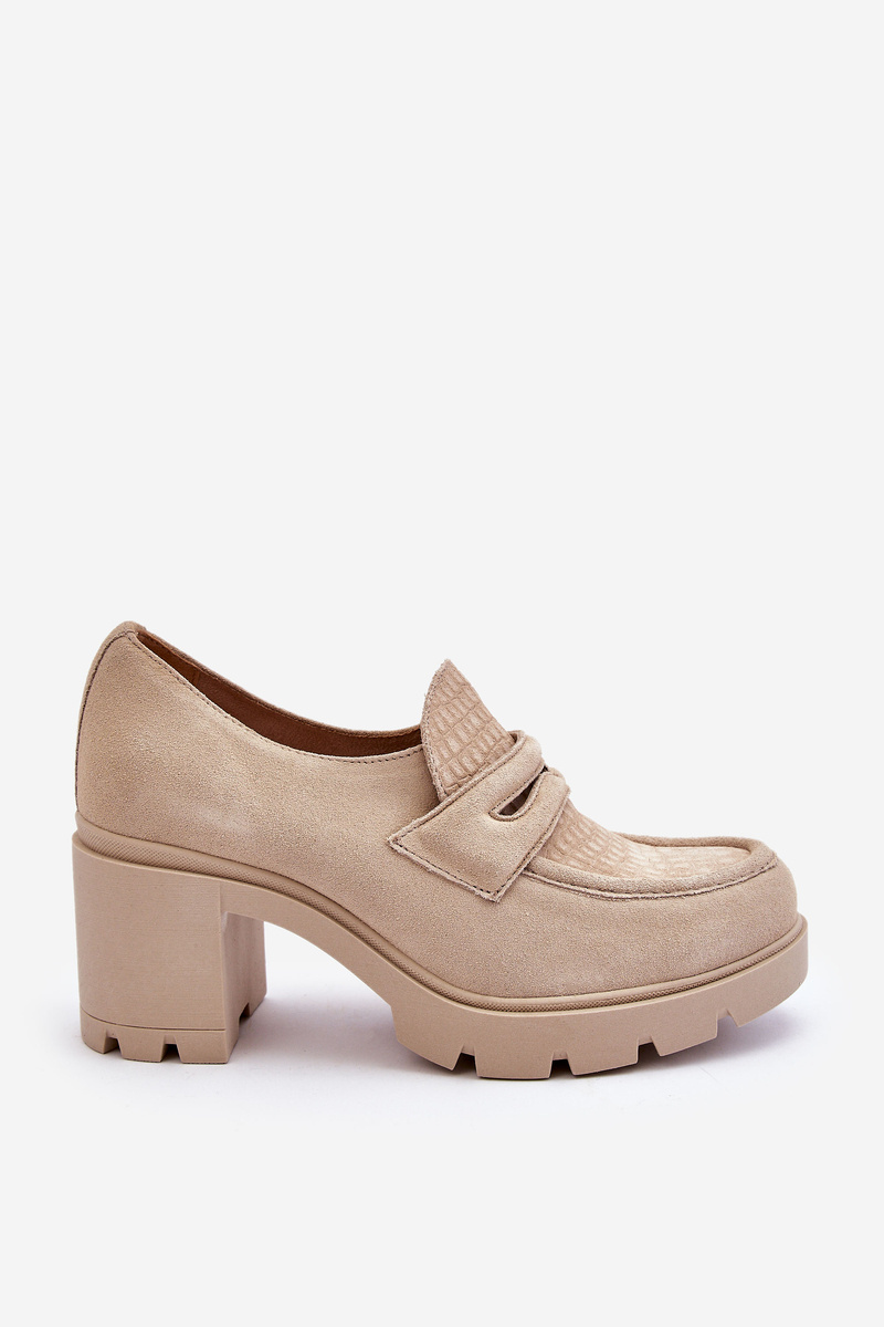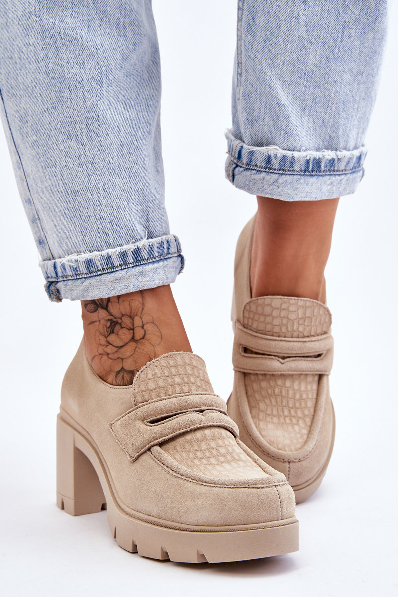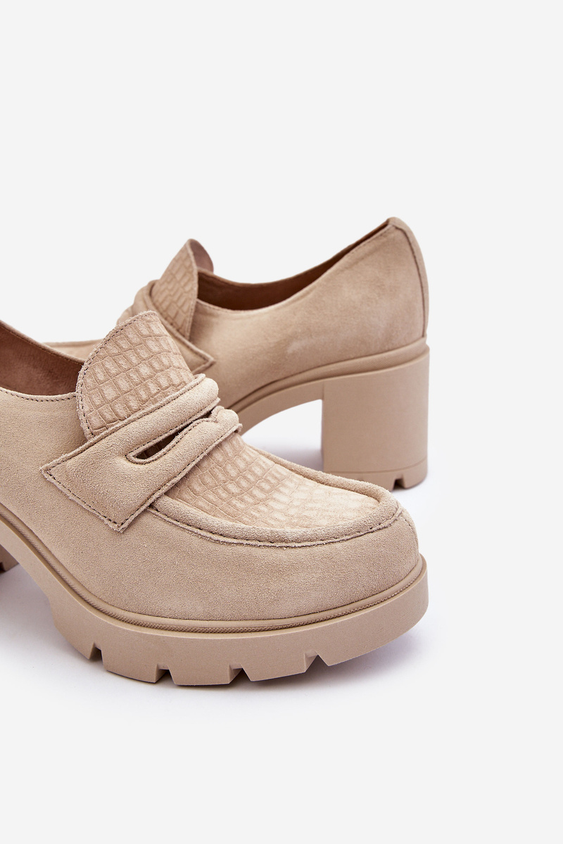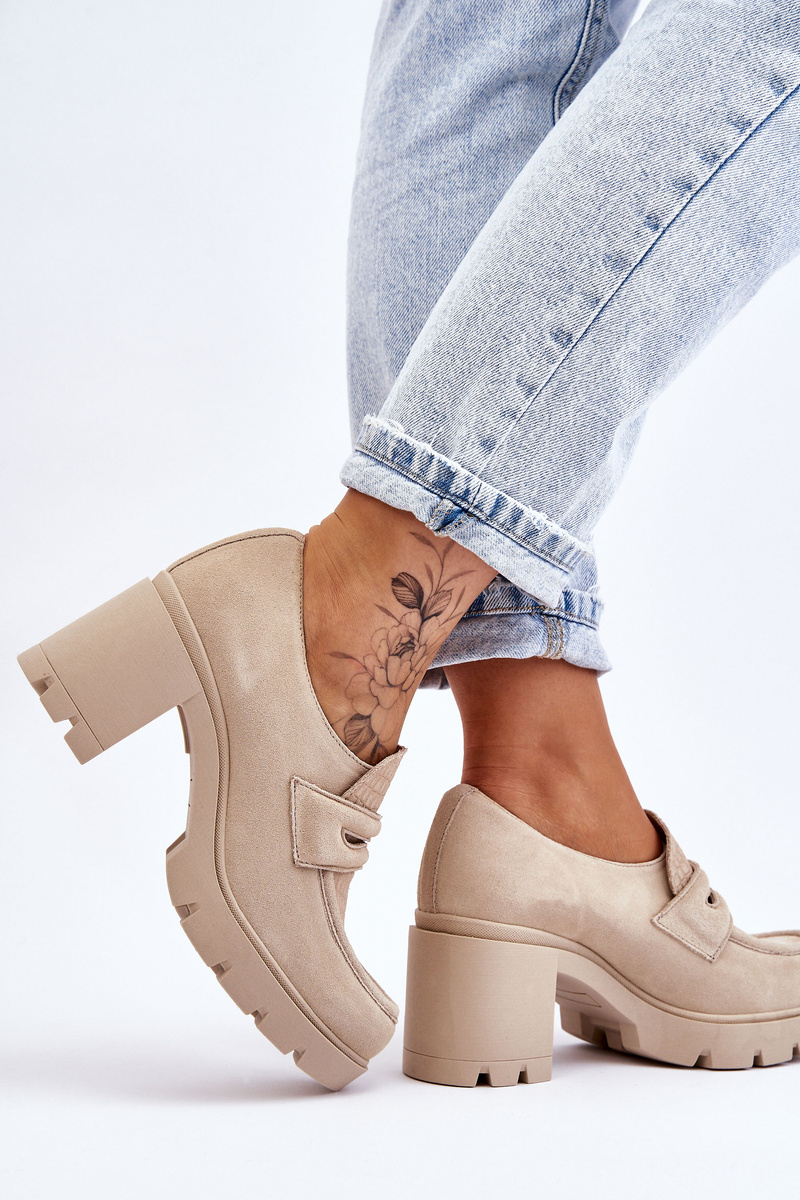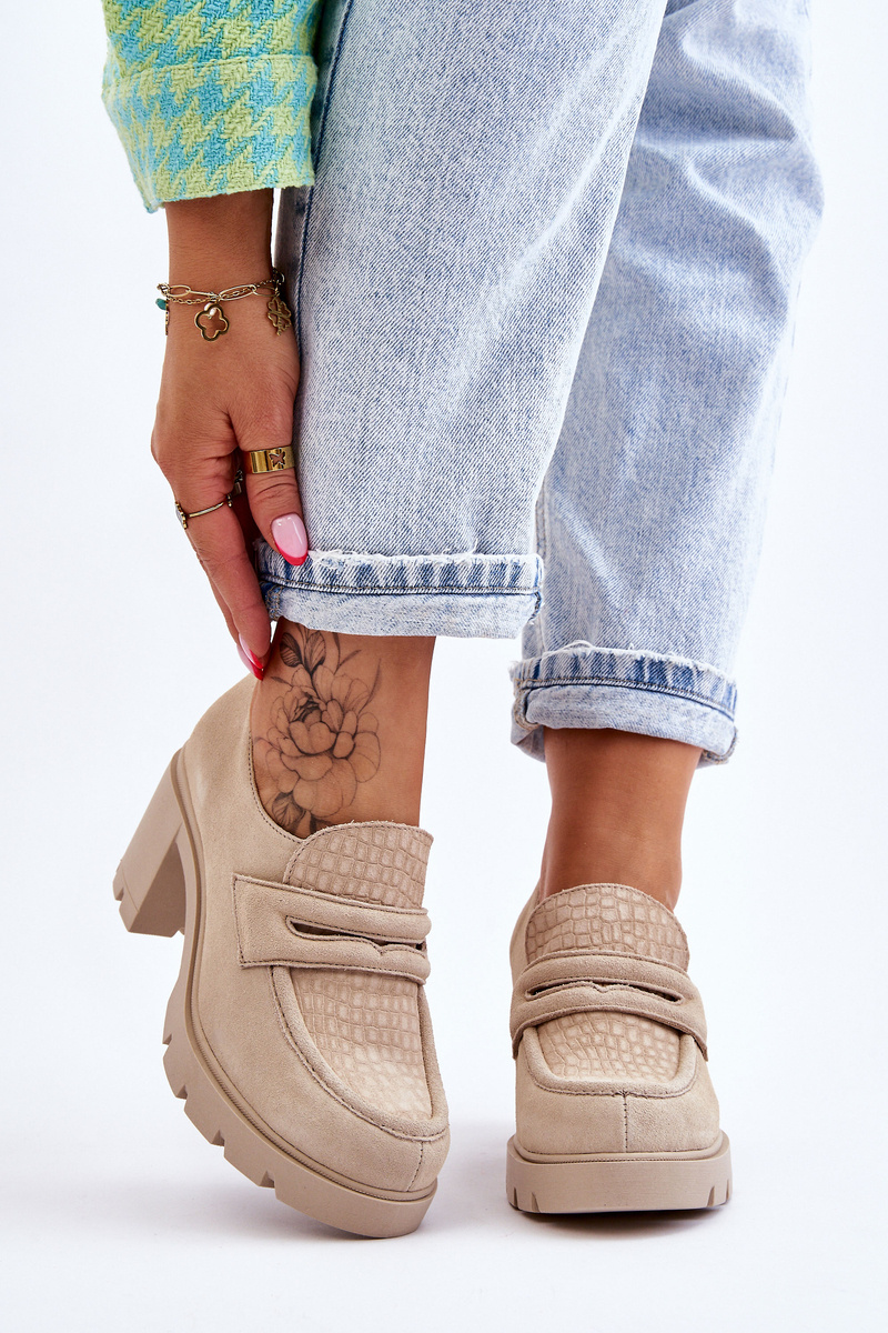 Półbuty Zamsz Słupek Platforma Jasnobeżowe Lemar Arabell