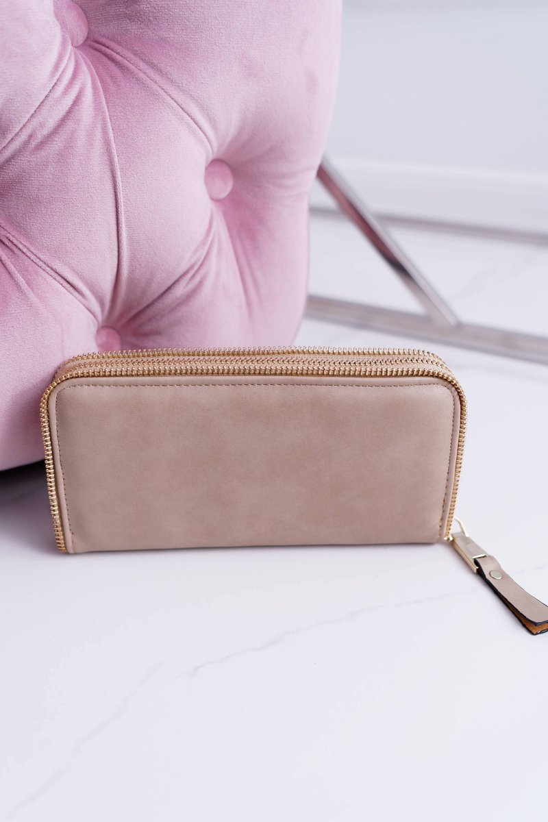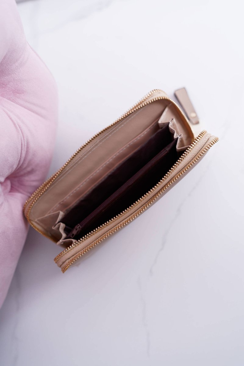 Portfel Damski Duży Beżowy Złoty Ozdobny Suwak