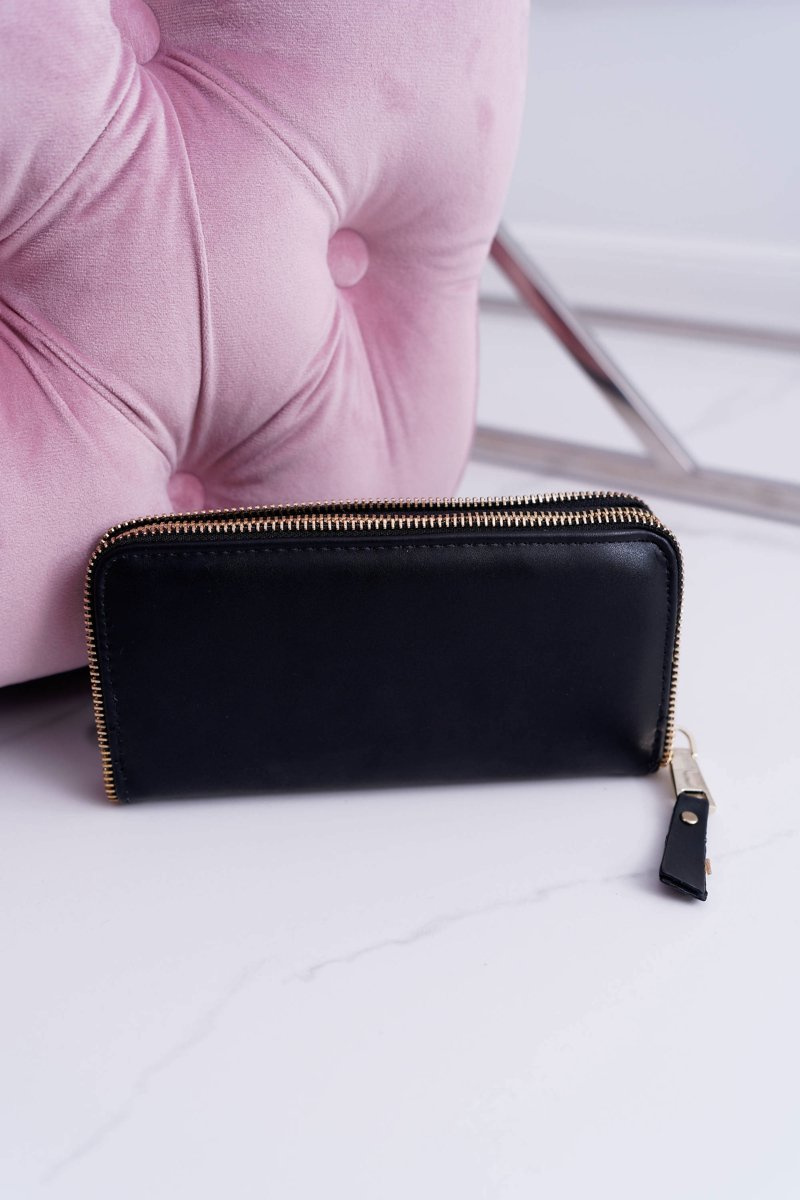 Portfel Damski Duży Czarny Złoty Ozdobny Suwak