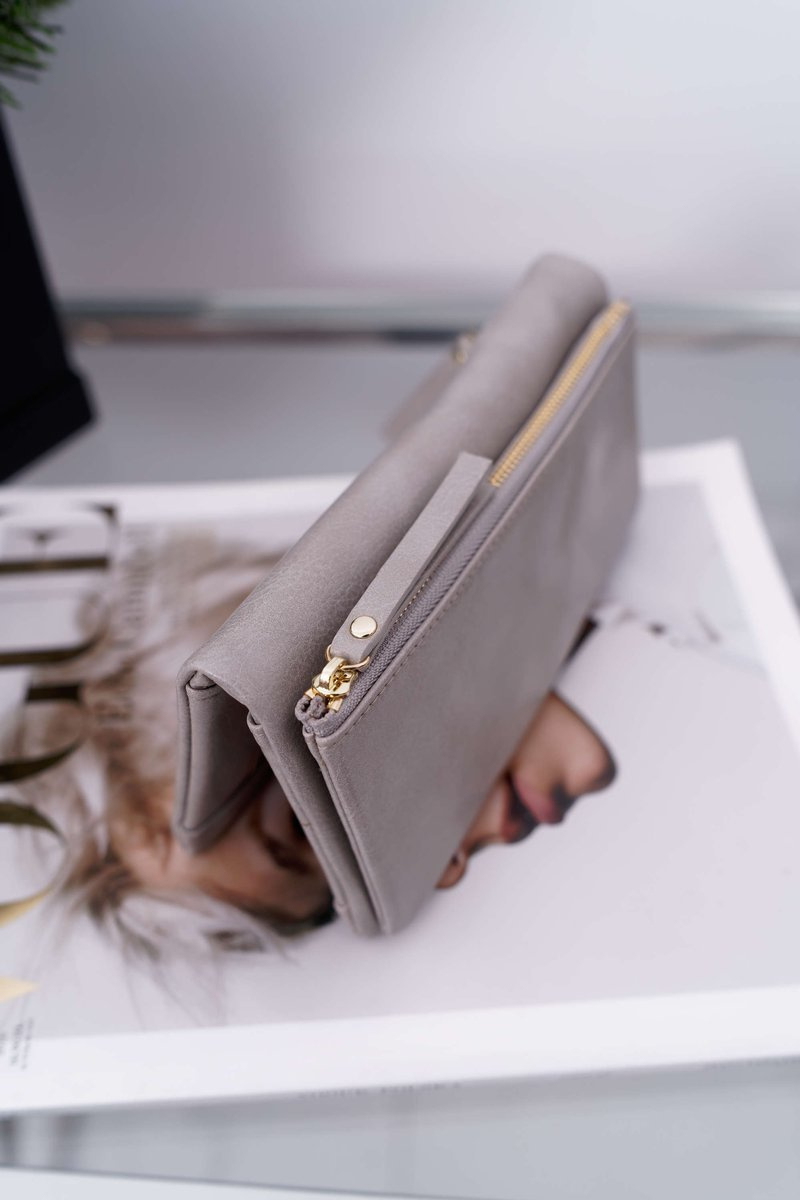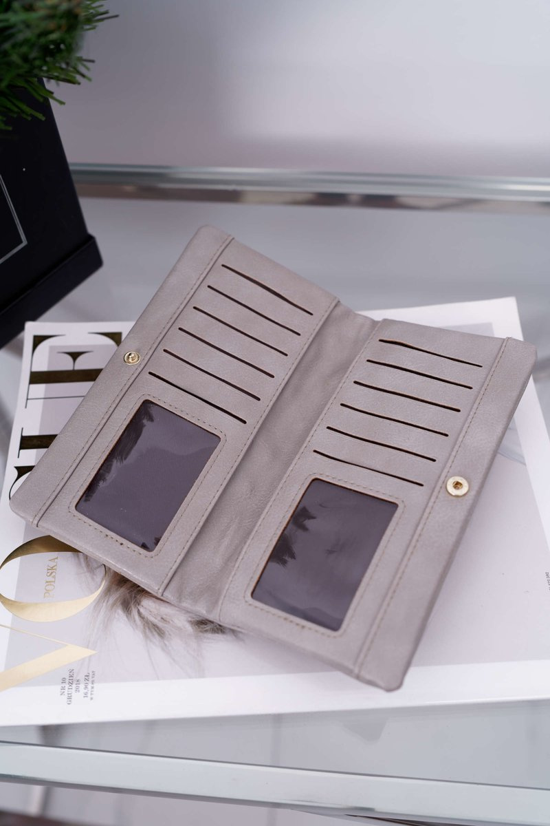 Przedstawiamy piękne portfele dla eleganckich Pań, dostępne w kilku cudownych kolorach. Produkty te charakteryzuje wyjątkowa prostota i elegancją. Wykonywane są przy użyciu najwyższej klasy materiałów. Staranne i piękne wykończenie każdego portfela oddaje niesamowitą dbałość o detale oraz modowy gust. Portfel posiada zapinanie na zatrzask. Wewnątrz znajdują się dwie komory oraz dużo kieszonek na karty. Na zewnętrznych stronach dwie dodatkowe kieszonki zamykane na zamek.