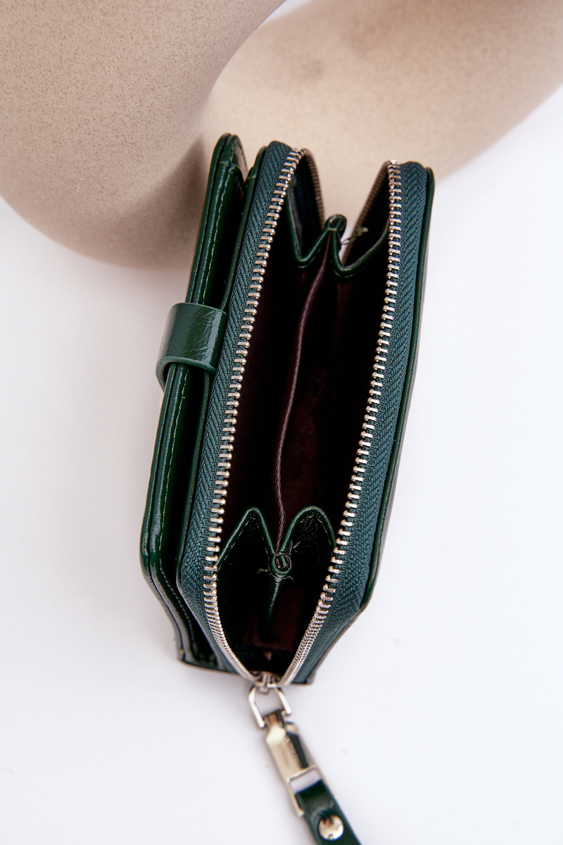 Portfel Damski Lakierowany Portmonetka Ekoskóra Ciemnozielony Zalirna MD1002