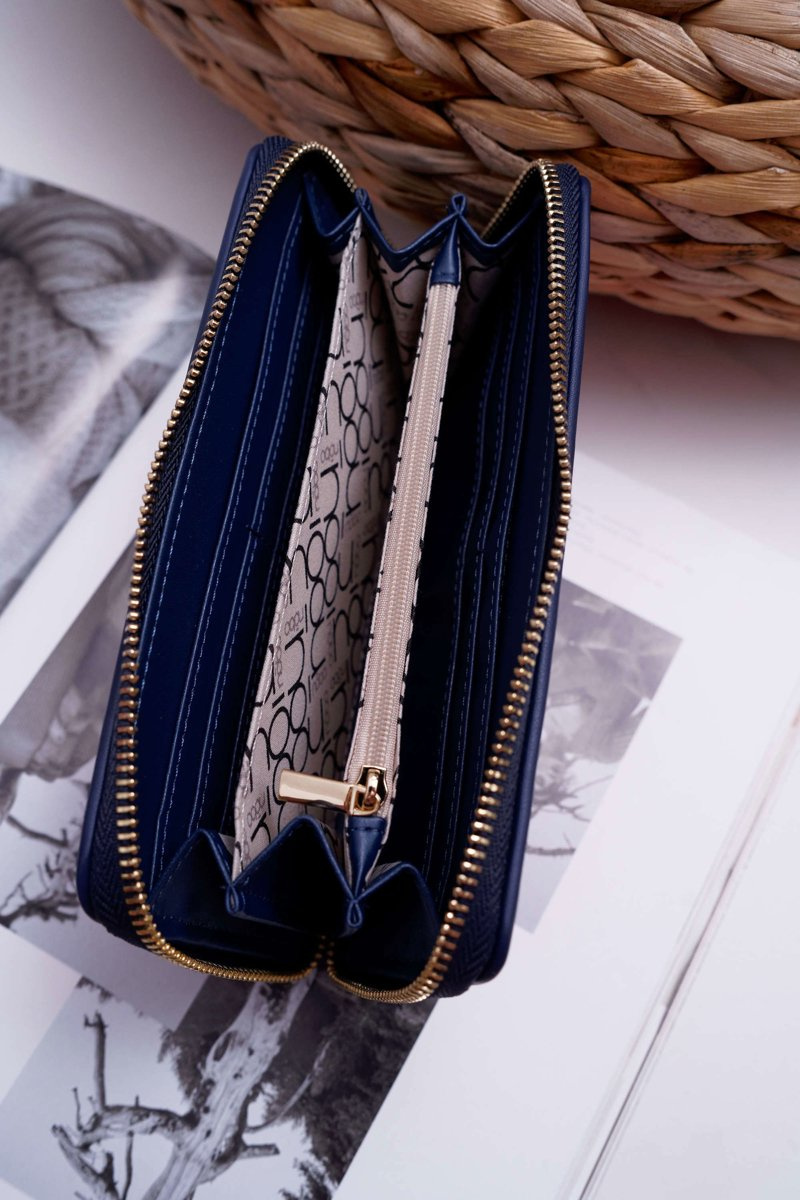 Elegancki damski portfel renomowanej marki NOBO. Klasyczny wzór wykonany ze skóry ekologicznej. Portfel zapinany na suwak. Wewnątrz znajduje się miejsce na 8 kart bądź innych dokumentów oraz cztery komory z czego jedna zapinana jest na suwak. Portfel zapakowany jest w eleganckie czarne pudełko z logiem marki.