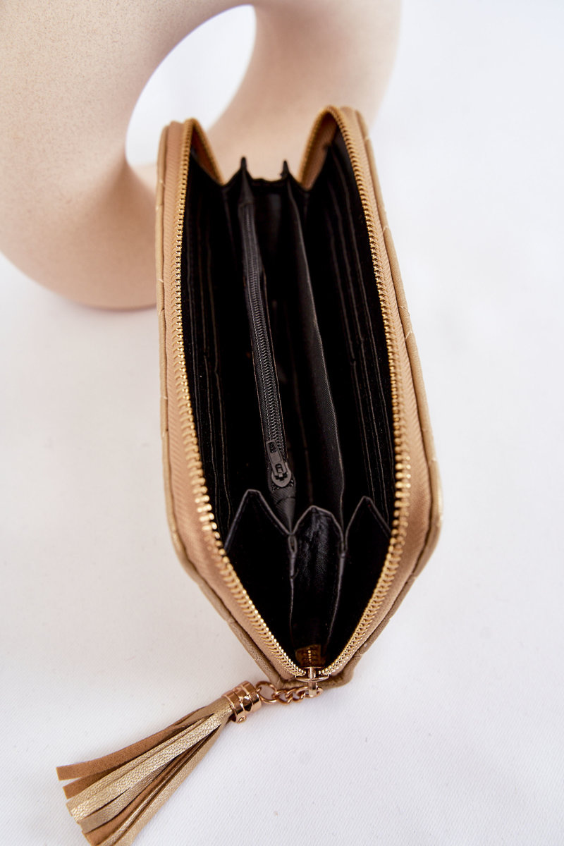 Portfel Duży Pikowany Z Paseczkiem Złoty Jeffrey