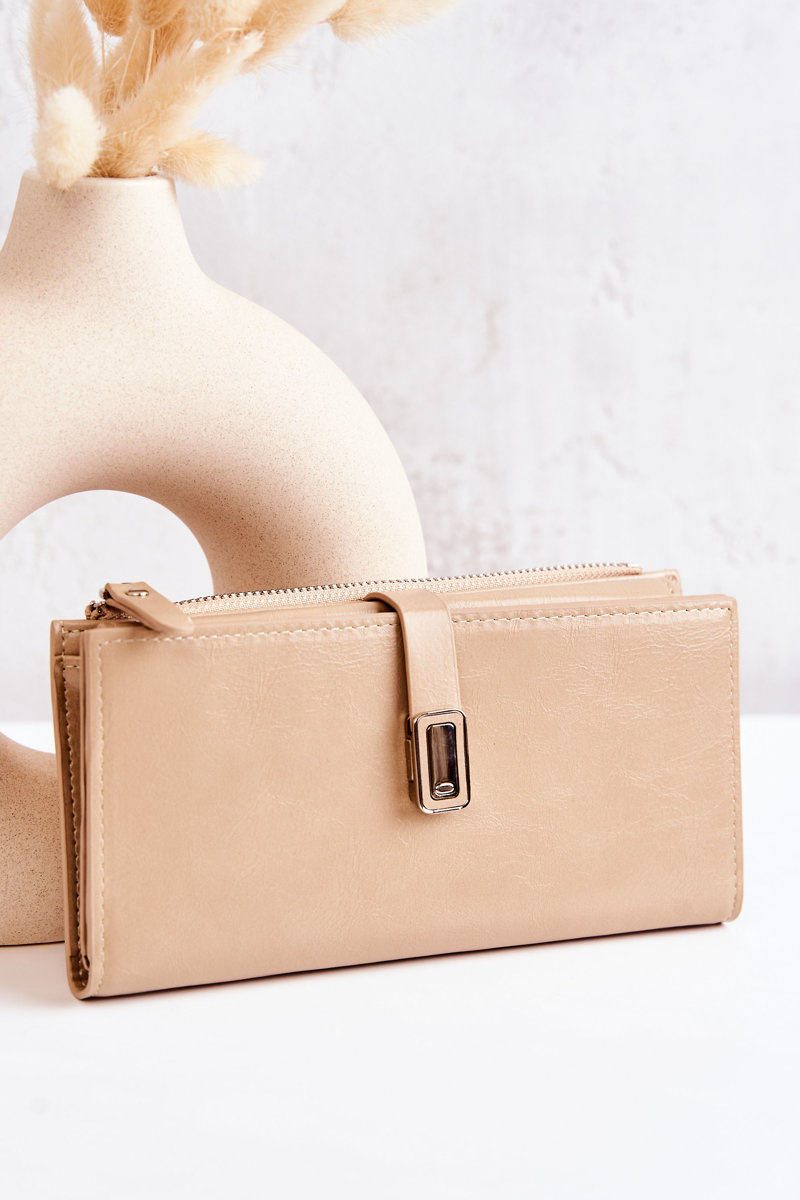 Portfel Duży Skórzany Na Magnes Beżowy Nereva