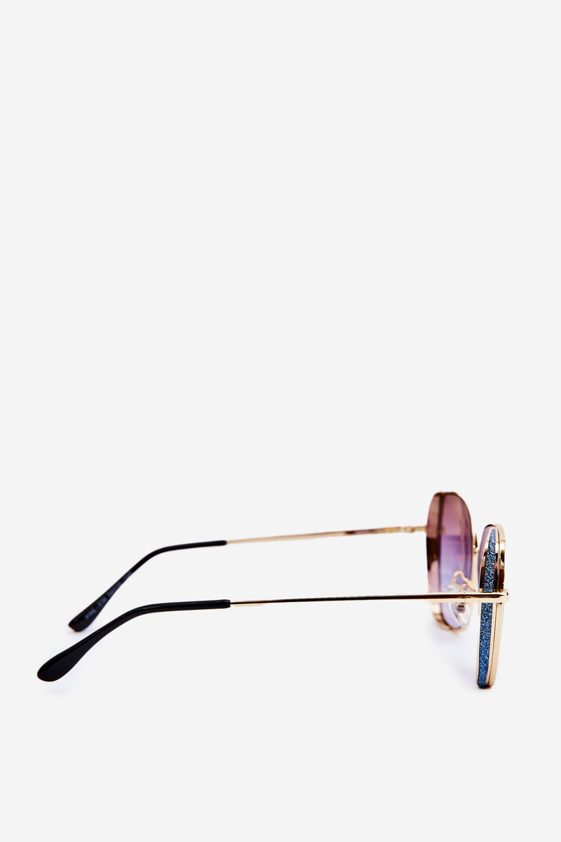 Przeciwsłoneczne Okulary Damskie Brokatowe Wstawki Złoto-Niebieskie UV400