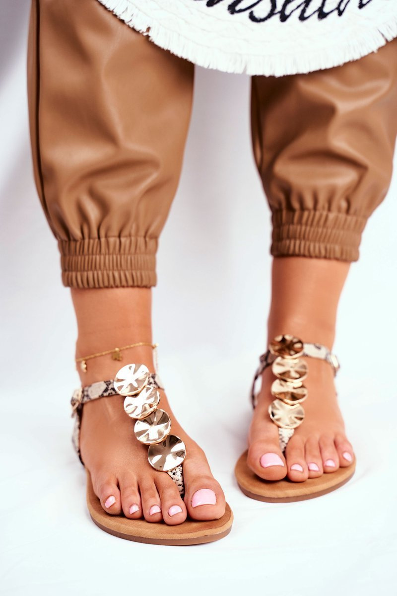 Sandałki Damskie Eleganckie Złote Blaszki Snake Casandra