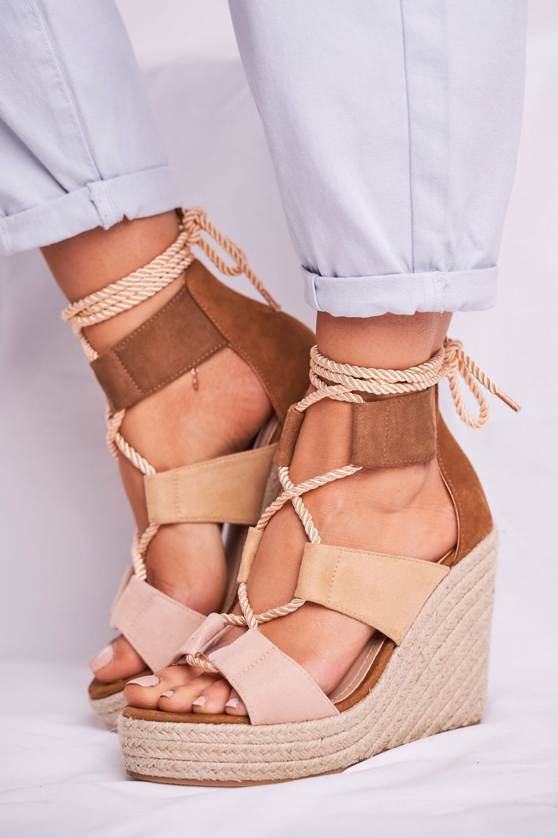 Sandałki Damskie Na Koturnie espadrylu Beżowe Beautiful One