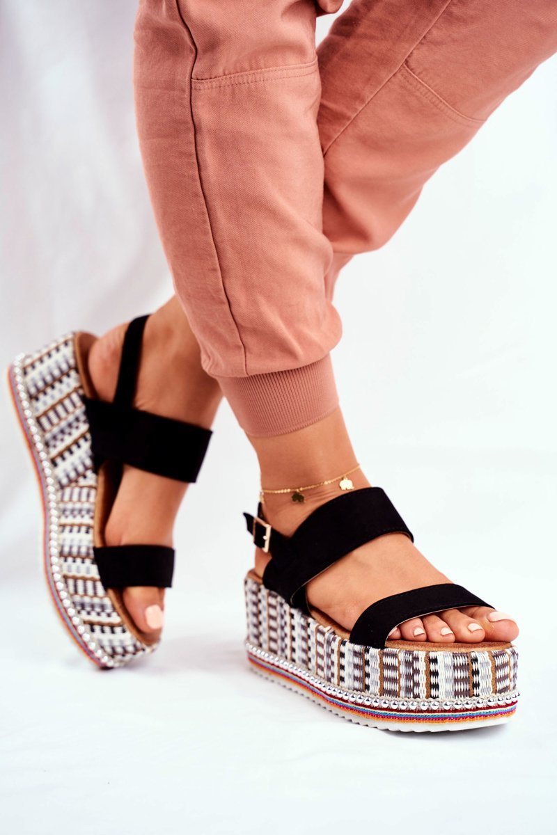 Sandałki Damskie Na Platformie Czarne Sandy