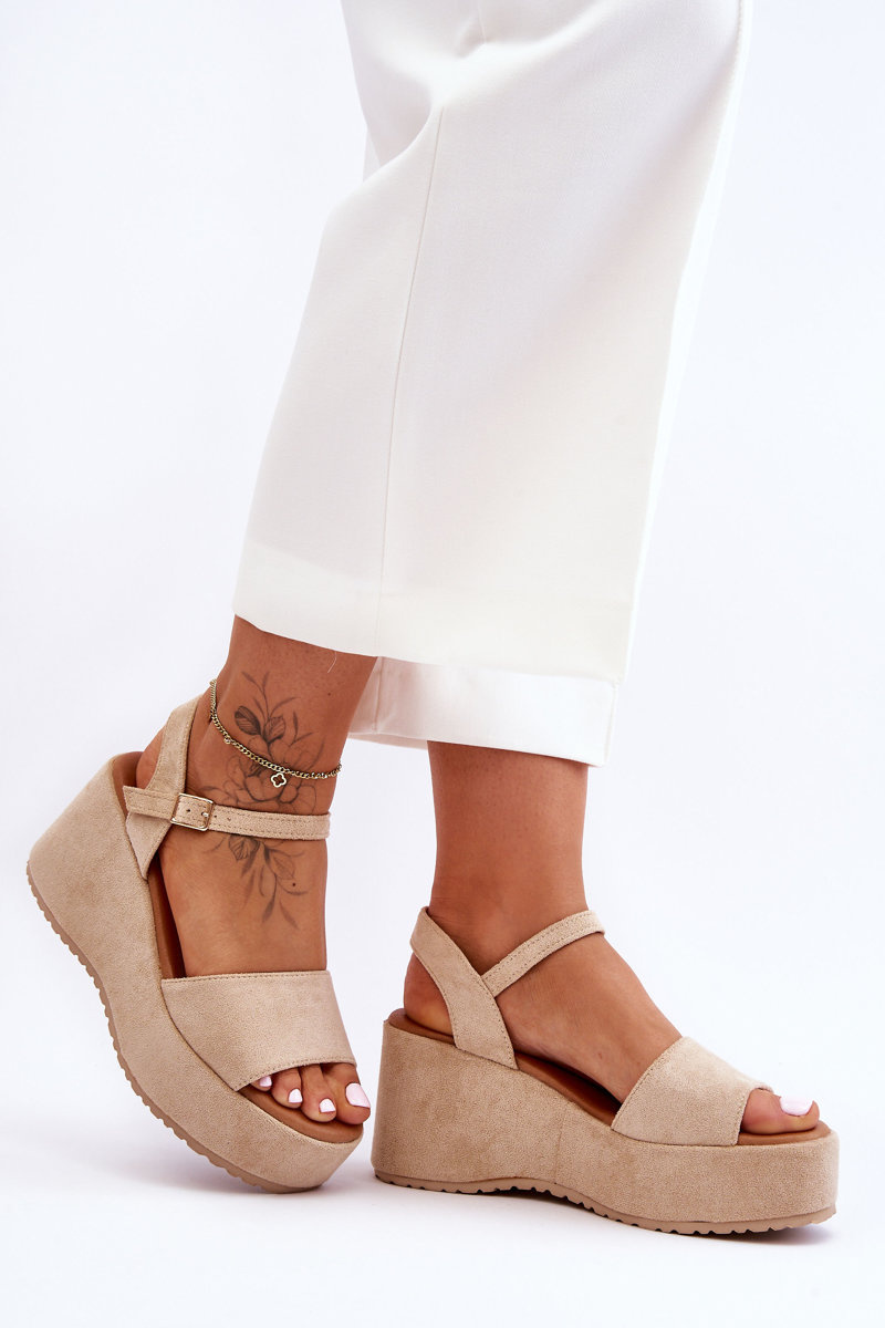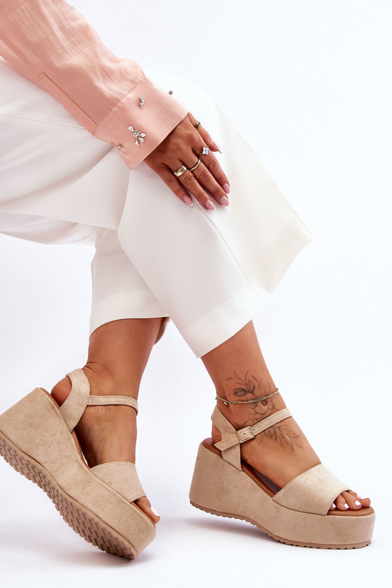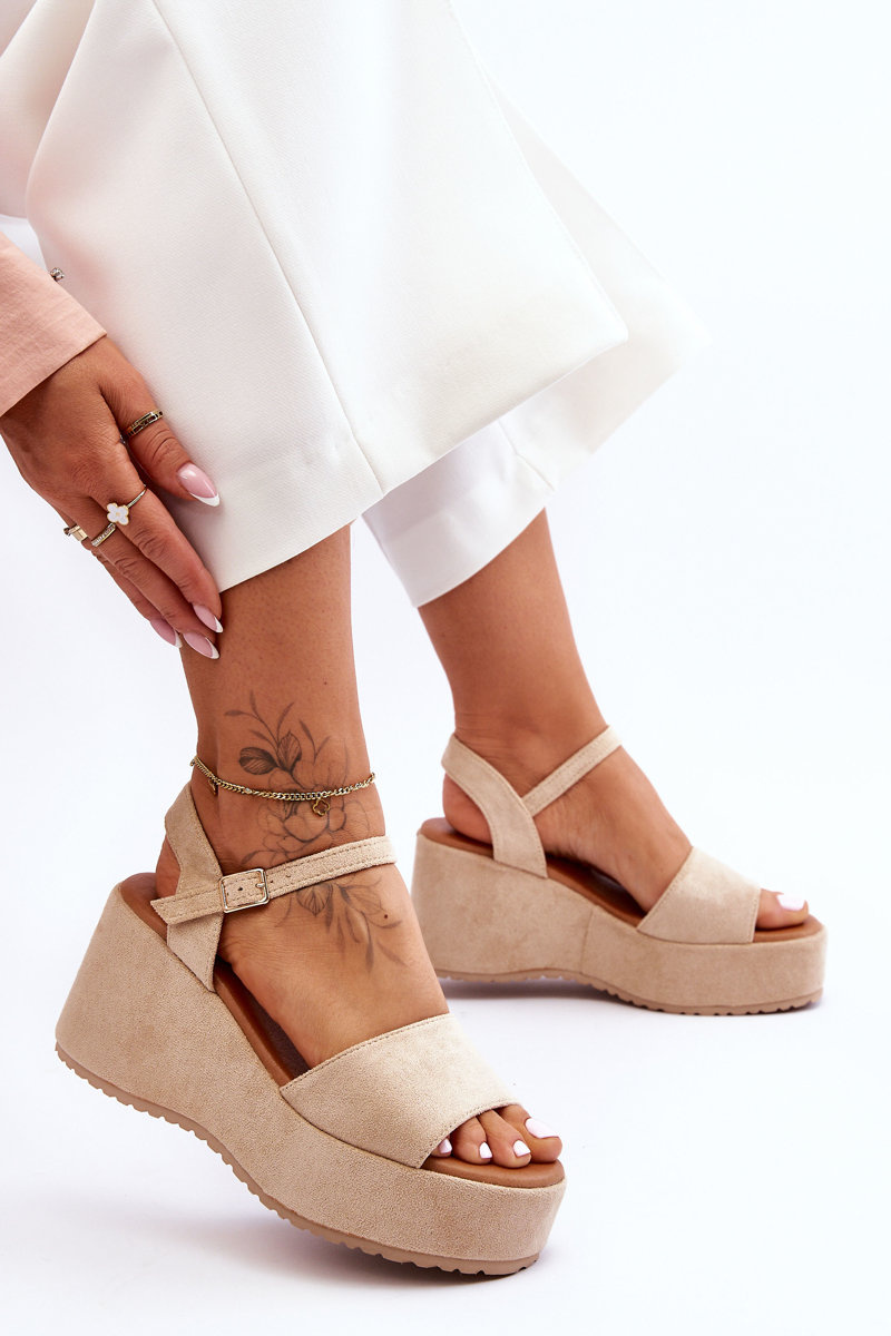 Sandałki Damskie Zamsz Koturn Beżowe Lydia HD055-182