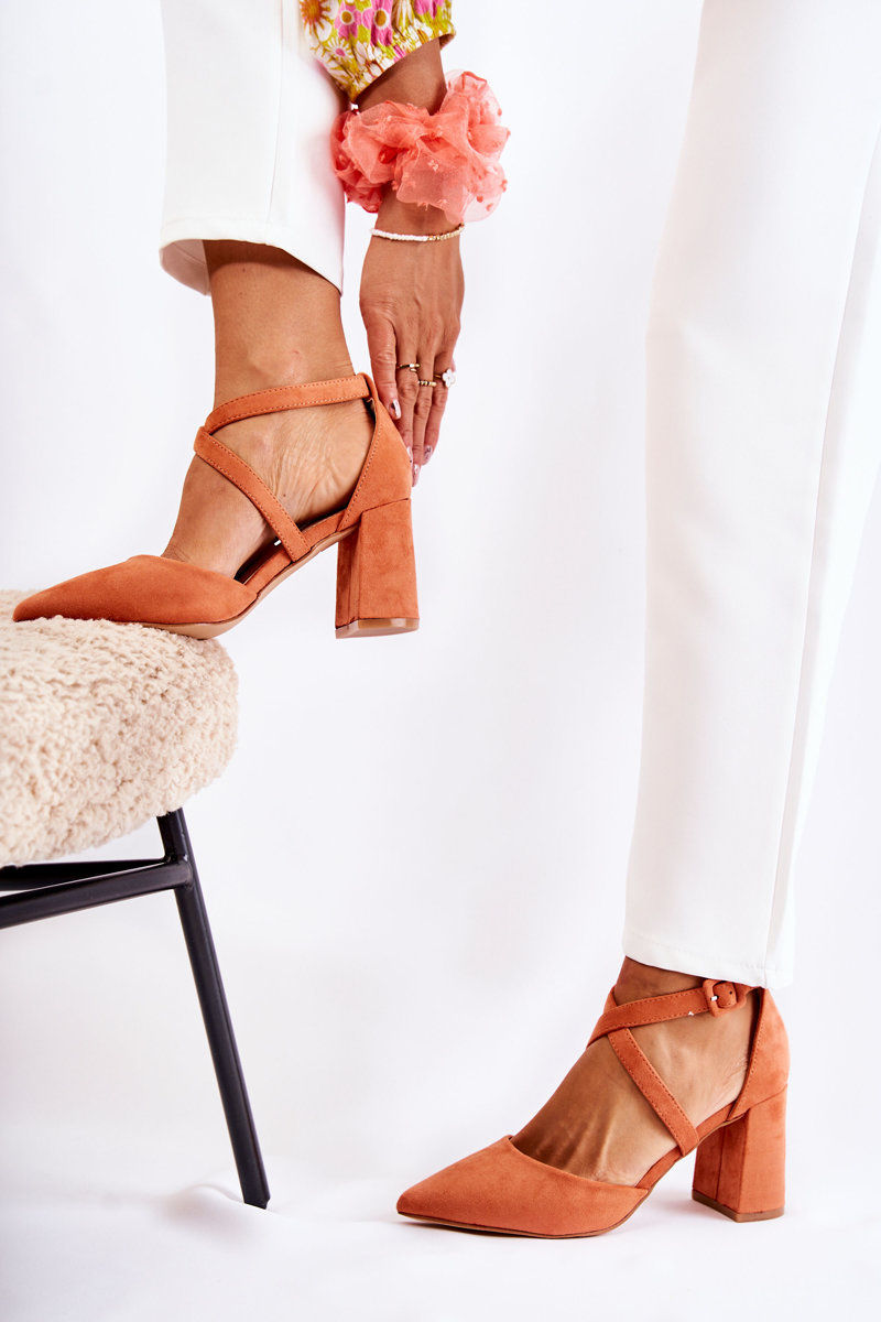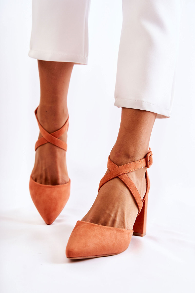 Sandałki Na Słupku Modne Pomarańczowe Sinari