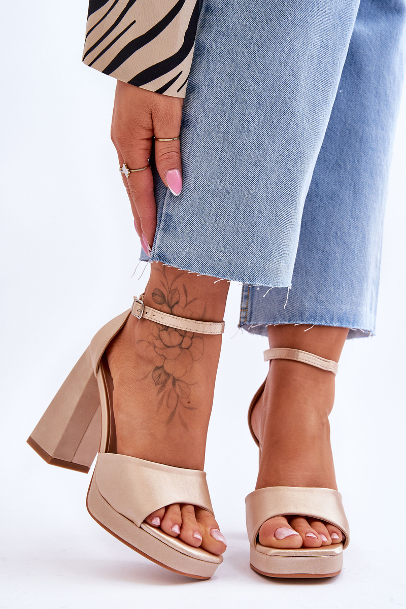 Sandałki Satynowe Masywny Obcas Beżowe Eternity
