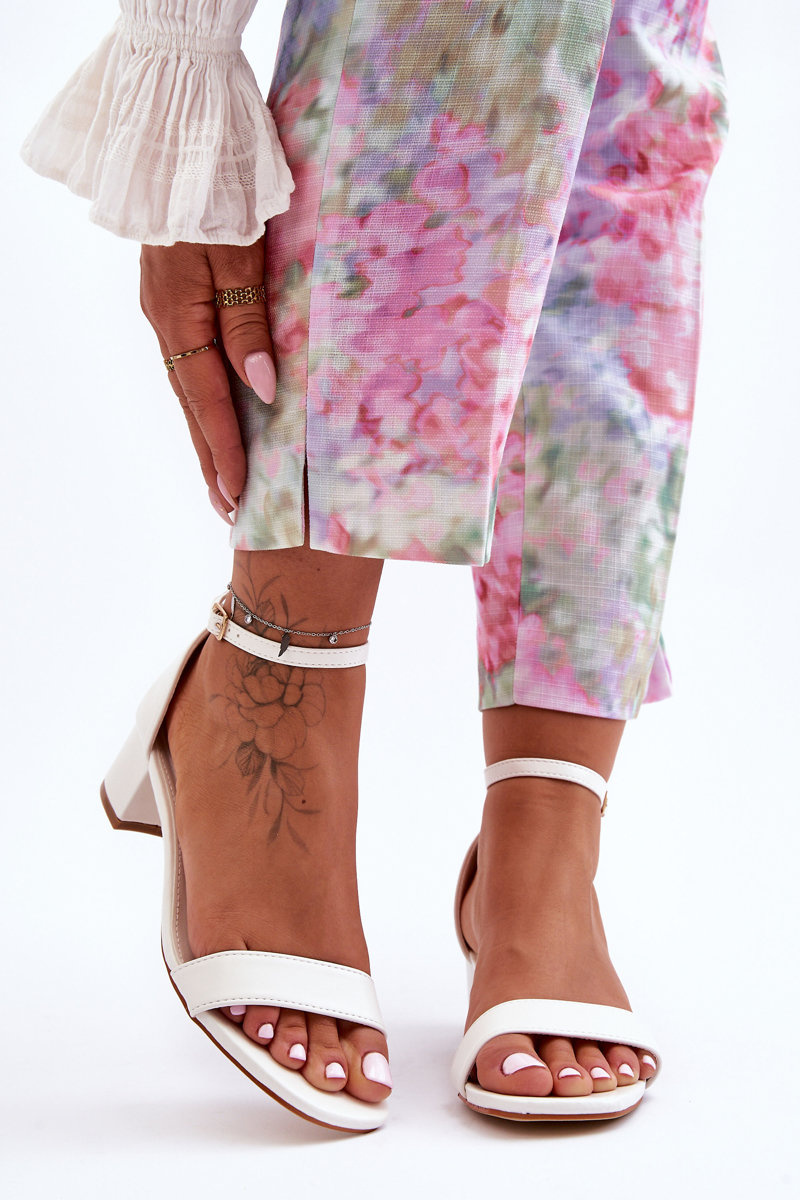 Sandałki Skóra Obcas Gładkie Białe Inspire Me! UC-133